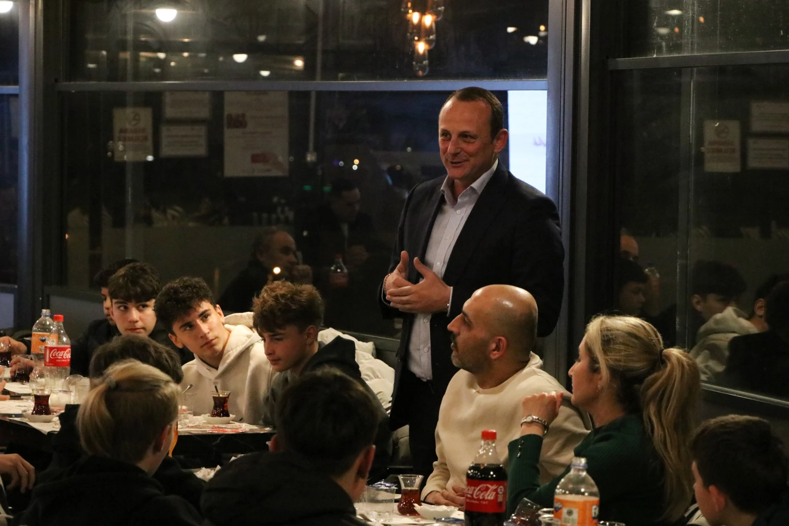 Çiftlikköy Belediye Başkanı Adil Yele, Yalova U-14 Ligi Şampiyonu olan Çiftlikköy Belediyespor gençleriyle iftarda bir araya geldi. Bayraktepe Sosyal Tesisleri’nde düzenlenen iftar organizasyonuna Belediyespor Yöneticileri Suat Kaan Aydın, Atilla Arı, Mesut Özyar, Sadık Güresin’le birlikte 14 yaş takımı futbolcuları, aileleri ve Belediyespor Teknik kadrosu katıldı. İftarda sporcularla ve aileleriyle yakından ilgilenerek hal ve hatırlarını soran Başkan Yele, genç sporcuların kendisiyle ve şampiyonluk kupası ile birlikte hatıra fotoğrafı çektirme isteklerini de kırmadı. İftar sonrasında yaptığı konuşmada çok güzel bir birliktelikle şampiyonluğu elde eden futbolcuları, teknik ekibi ve aileleri tebrik eden Başkan Yele, “Bu akşam burada sizlerle beraber olmaktan onur duyuyorum. U-14 takımımız şampiyonluk kupasını kazanarak hepimizi gururlandırdı. Azmin ve emeğin karşılığını aldılar. Bu başarıda emeği geçen tüm sporcu kardeşlerimizi, teknik ekibi, yöneticilerimizi tebrik ediyorum. Bu daha sizler için başlangıç, önünüzde daha nice başarılar, nice gurur tabloları olacak. Türkiye Şampiyonası’nda da Çiftlikköyümüzü en güzel şekilde temsil edeceğinize inancım tam. Başarılarınızın devamını diliyorum, yolunuz açık olsun” diye konuştu.