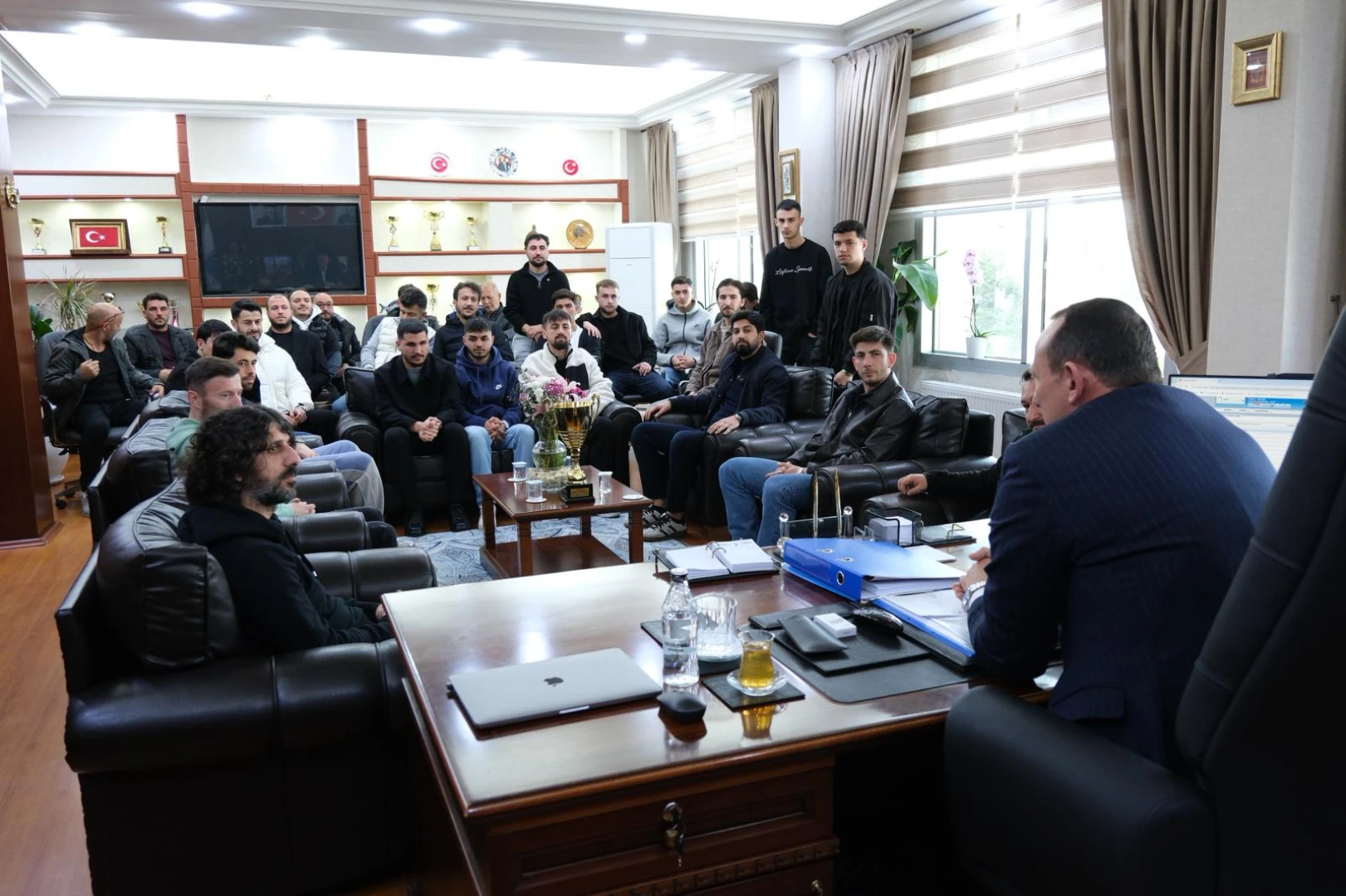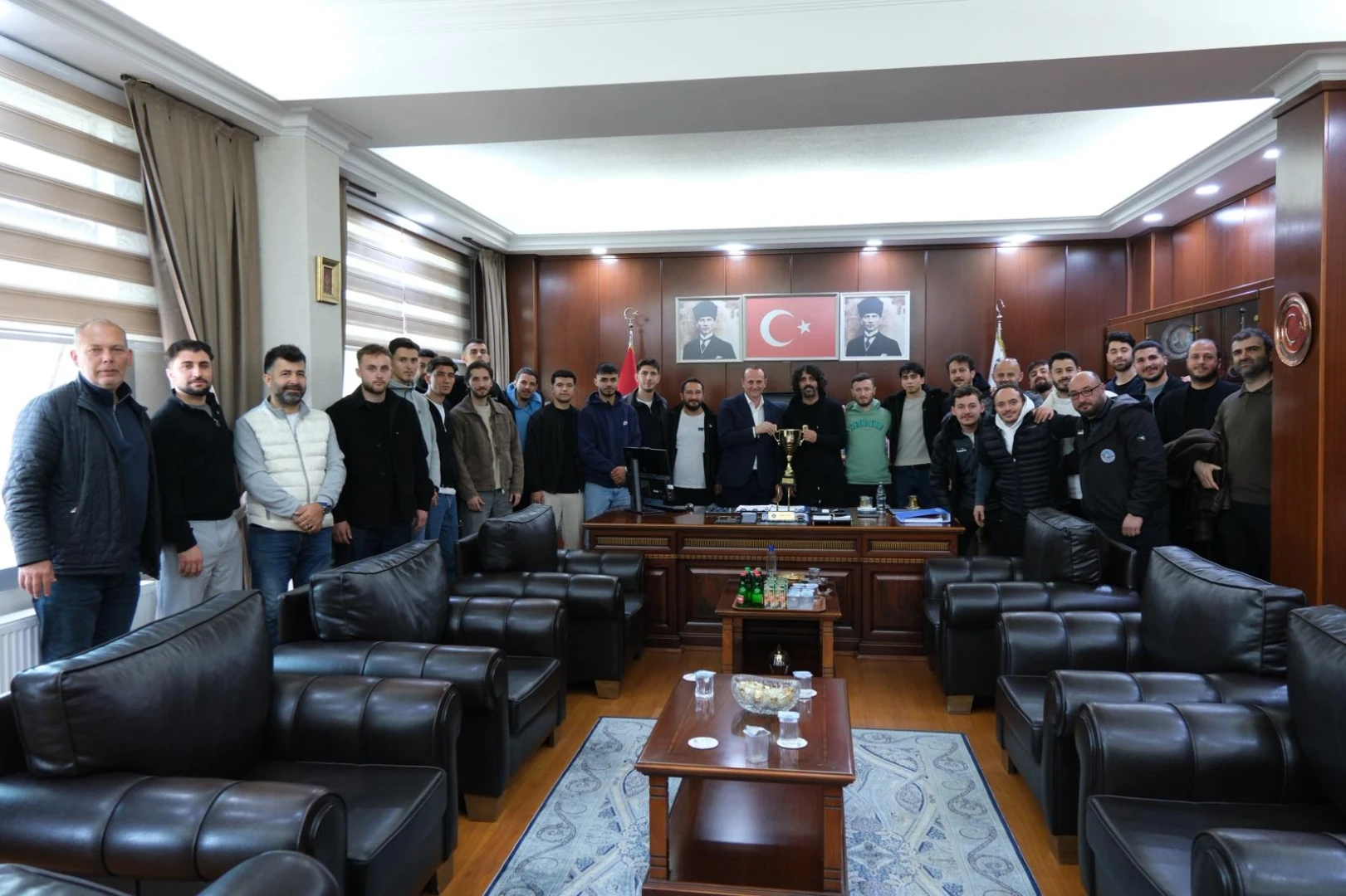 Çiftlikköy Belediye Başkanı Adil Yele, tarihinde ilk defa Yalova şampiyonu olarak Bölgesel Amatör Lig’e yükselen Çiftlikköy Belediyespor Futbol Takımı ve teknik heyetini ağırladı.