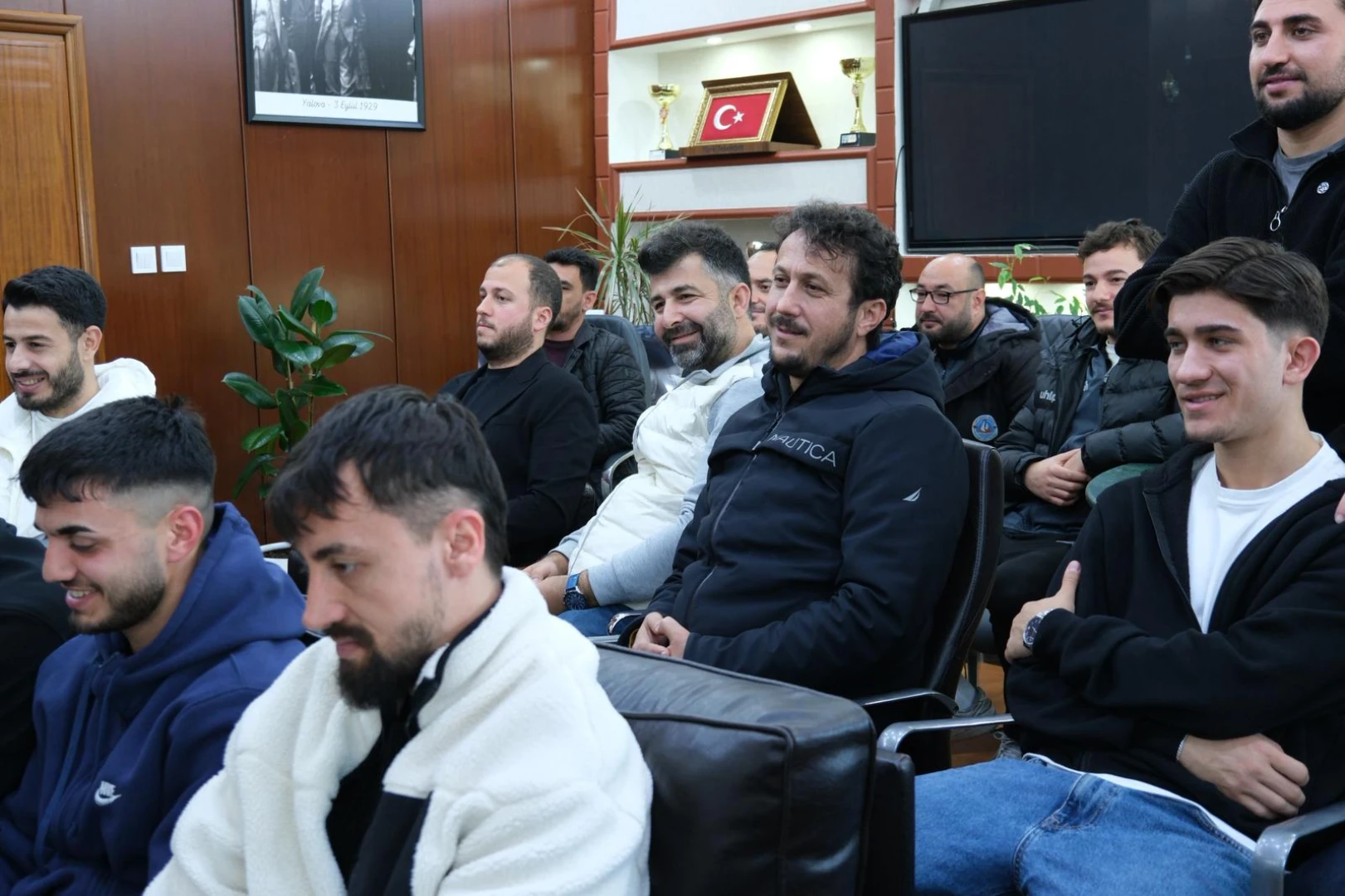 Belediyespor Yönetimi, Teknik Kadro ve A Takım futbolcularının yer aldığı ziyarette, alın teriyle elde edilen Yalova Süper Amatör Lig Şampiyonluğu’ndan dolayı tüm ekibi tebrik eden Başkan Yele, Bölgesel Amatör Lig’de de aynı inanç ve kararlılıkla yola devam etmeyi hedeflediklerini söyledi.