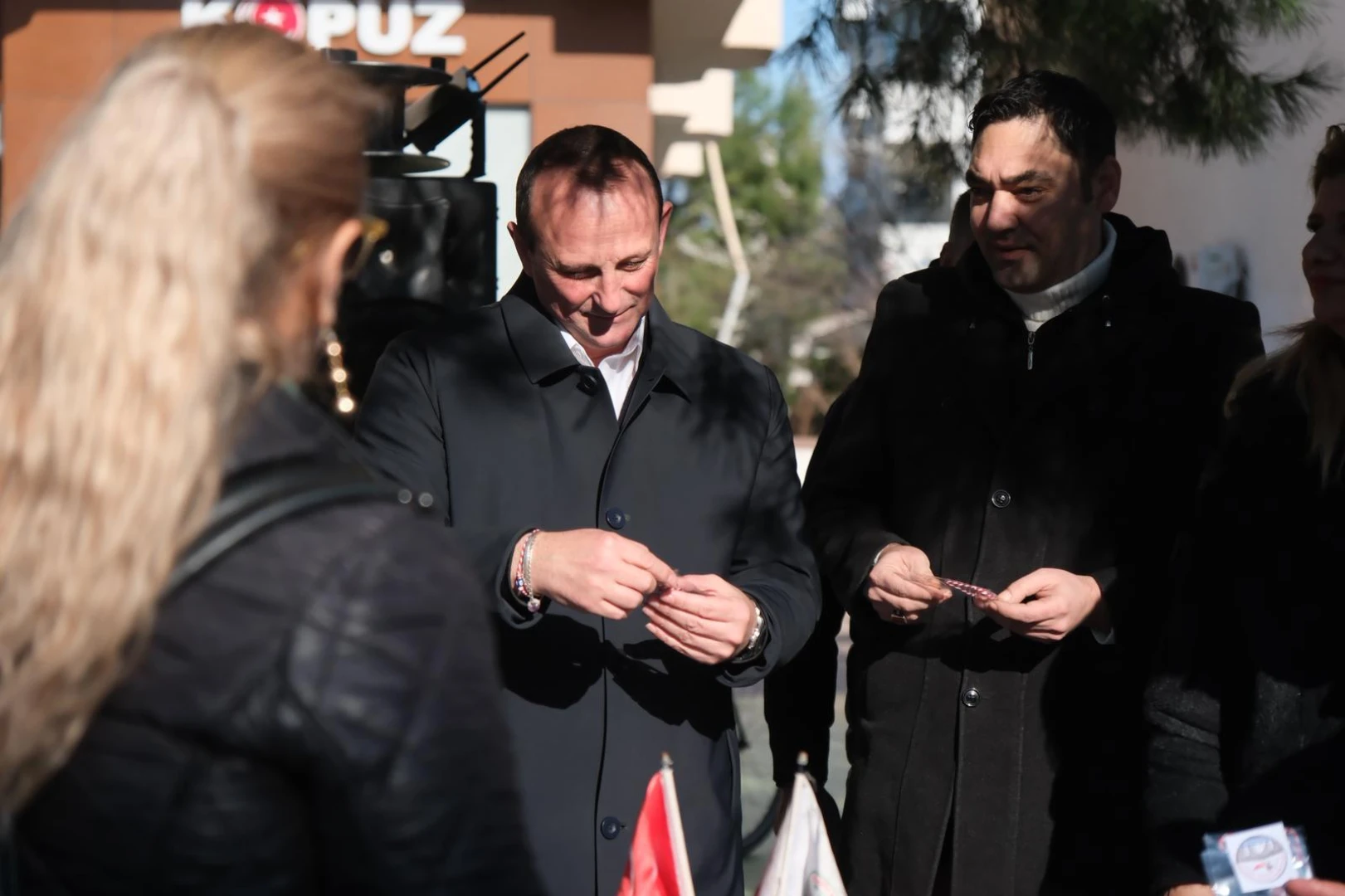 Baharın gelişini simgeleyen ve leyleklerin görülmesiyle birlikte dileklerin dilendiği bir gelenek olan marteniçka etkinliğine destek verdiğini belirten Başkan Yele, kırmızı-beyaz ipliklerden hazırlanan marteniçkaları vatandaşların bileklerine takarak hediye etti.