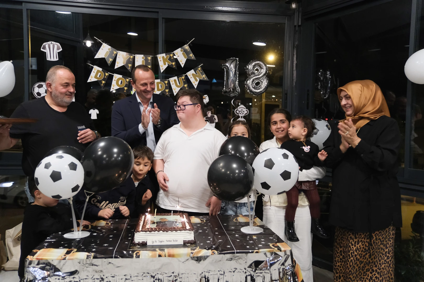 Üzerinde ‘İyi ki doğdun Hamza Baba’ yazan, Beşiktaş formalı resminin yer aldığı pastayı, Hamza’nın ailesi ve arkadaşlarıyla birlikte kesen Başkan Yele, “Hamza Baba’yla ikimiz de aynı takımı destekliyoruz. O benden de sıkı bir taraftar. İyi ki doğdun Hamza, hayatın boyunca sağlık, mutluluk ve sevdiklerinle dolu nice güzel yaşların olsun” dedi.