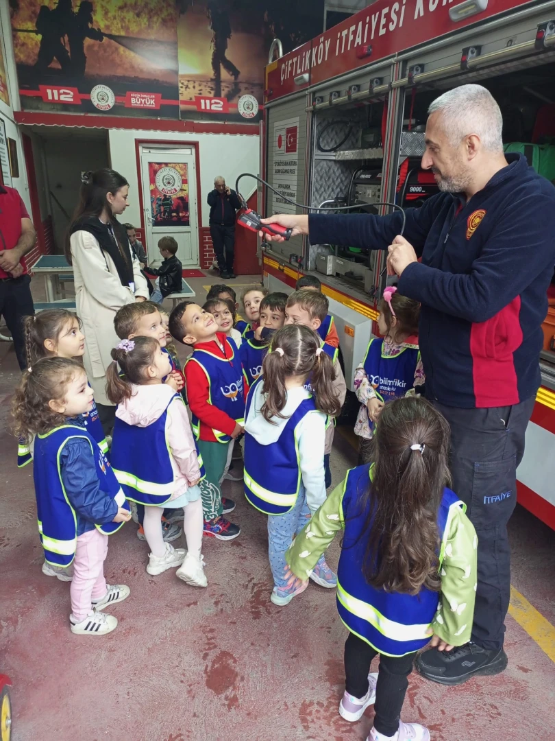 İtfaiye Haftası dolayısıyla anaokulu miniklerine itfaiyeciliğin nasıl bir meslek olduğunu tanıtmak ve yerinde göstermek amacıyla böyle bir etkinlik düzenlediklerini söyleyen Çiftlikköy Bilimfikir Anaokulu öğretmenlerinden Neslihan İnce, “Miniklerimiz hayatlarında ilk kez itfaiyeci görmenin heyecanını yaşadı. Bizlere yangınlarda, kazalarda yardıma koşan kahraman itfaiyeci ağabeylerini görünce hepsi çok heyecanlandı. Miniklerimiz için çok güzel ve anlamlı bir deneyim oldu” diye konuştu. İtfaiyeci ağabeyleri tarafından itfaiye araçlarına bindirilen ve itfaiye giysileri giyerek kasklarını takan miniklerin ise keyfine diyecek yoktu. İtfaiyecilerden yaptıkları çalışmaları da dinleyen anaokulu minikleri, güzel hatıralarla itfaiyecilerin yanından ayrıldılar.