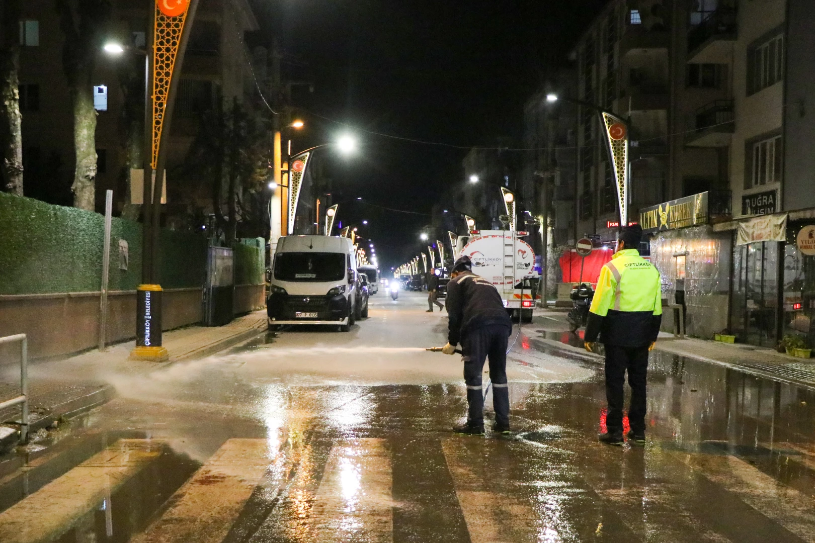 Çiftlikköy’de belediye ekipleri, Ramazan Bayramı arifesinde vatandaşların huzurlu ve temiz bir ortamda bayramlarını geçirmelerini sağlamak adına temizlik çalışmaları yapıyor.