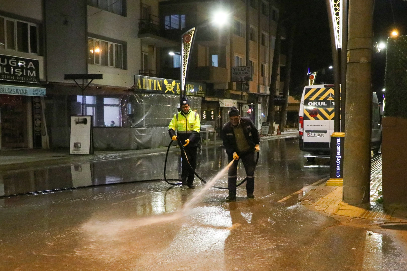 Çarık, ilçe genelinde temizlik ve bakım çalışmalarını sürdürdüklerini kaydederek, “Park Bahçeler Müdürlüğü ekiplerimiz ve Temizlik İşleri Müdürlüğü ekiplerimiz, bayram öncesinde yoğun gayret gösteriyor. Bayramda çok ziyaret edilen camiler ve mezarlıkların bakım ve temizlikleri titizlikle sürdürülüyor. İlçe merkezindeki tüm camilerimizin yanı sıra tüm mezarlıklarımızda da çim biçme çalışmalarımızı tamamladık” diye bilgi verdi. Camilerin önlerinde, ana arterler başta olmak üzere ilçenin cadde ve sokaklarda yolların tazyikli suyla yıkama çalışmaları yapıldığını dile getiren Çarık, ibadet alanlarının yanı sıra meydanlar, okul bahçeleri, kapalı pazaryeri ve ana arterlerde düzenli olarak temizlik çalışmalarının sürdüğünü sözlerine ekledi.