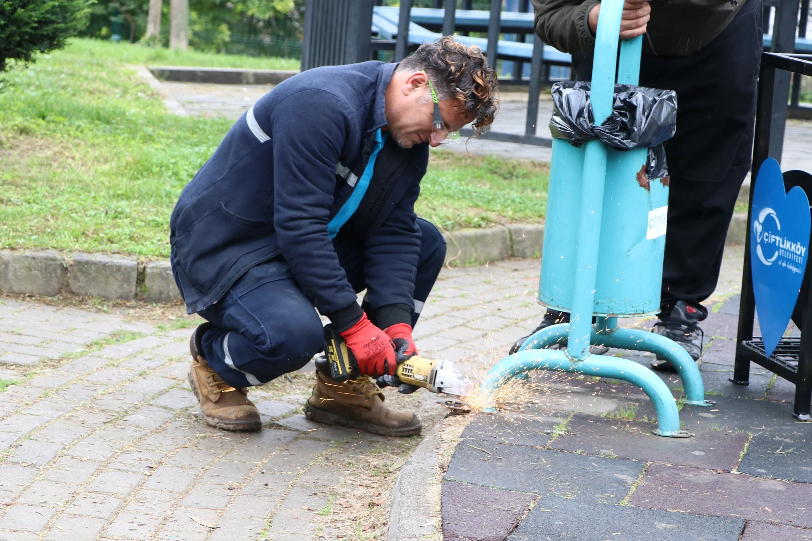Çiftlikköy Belediyesi Park ve Bahçeler Müdürlüğü ekipleri, ilçedeki parklara yeni bir soluk kazandırmaya devam ediyor. Belediyenin kaynak atölyesinde üretilen kamelya, bank ve çöp kovaları artık sahada kullanılmaya başlanırken, ilk uygulamalardan biri Çiftlik Mahallesi’nin en büyük parkı olan Kırımoğlu Parkı’nda gerçekleştirildi.