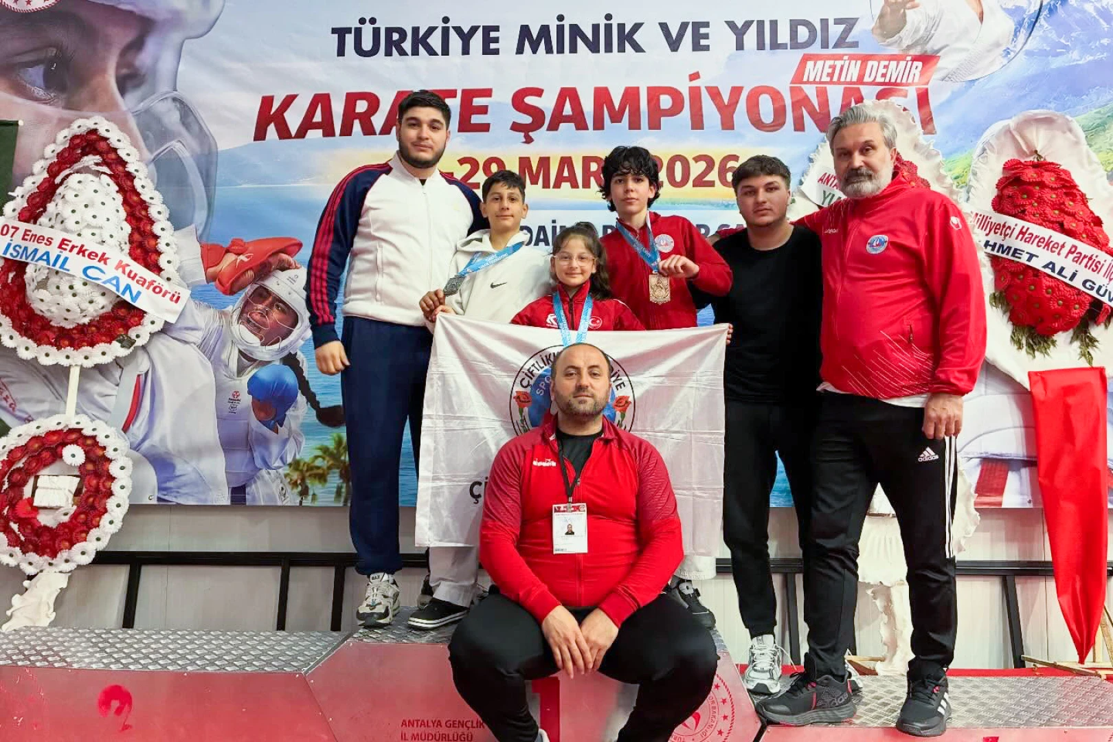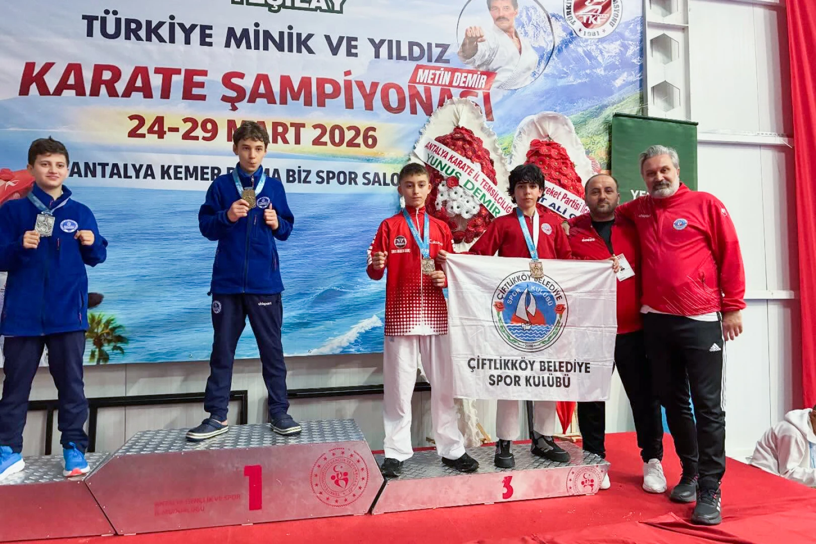 Antalya’da düzenlenen Türkiye Yıldızlar ve Minikler Karate Şampiyonası’na katılan Çiftlikköy Belediyespor Karate Takımı sporcuları, madalyalarına yenilerini ekledi. Turnuvanın ilk günlerinde 32 kg’da Türkiye Şampiyonu olan Mine İkra Öner’in ardından Yıldız Erkekler kategorisinde tatamiye çıkan Muhammed Miraç Öner, 40 kg’da Türkiye İkincisi, aynı kategoride 45 kg’da Yuşa Miran Can ise Türkiye Üçüncüsü olarak Çiftlikköy’e gurur yaşatmayı sürdürdü. Elde ettikleri derecelerle Dünya Gençlik Ligi seçmelerinde yer alan sporculardan Yuşa Miran Can, seçmelerde de ikinci olarak Hırvatistan’ın Porec kentinde yapılacak olan Dünya Gençlik Liglerine oynamaya hak kazandı.