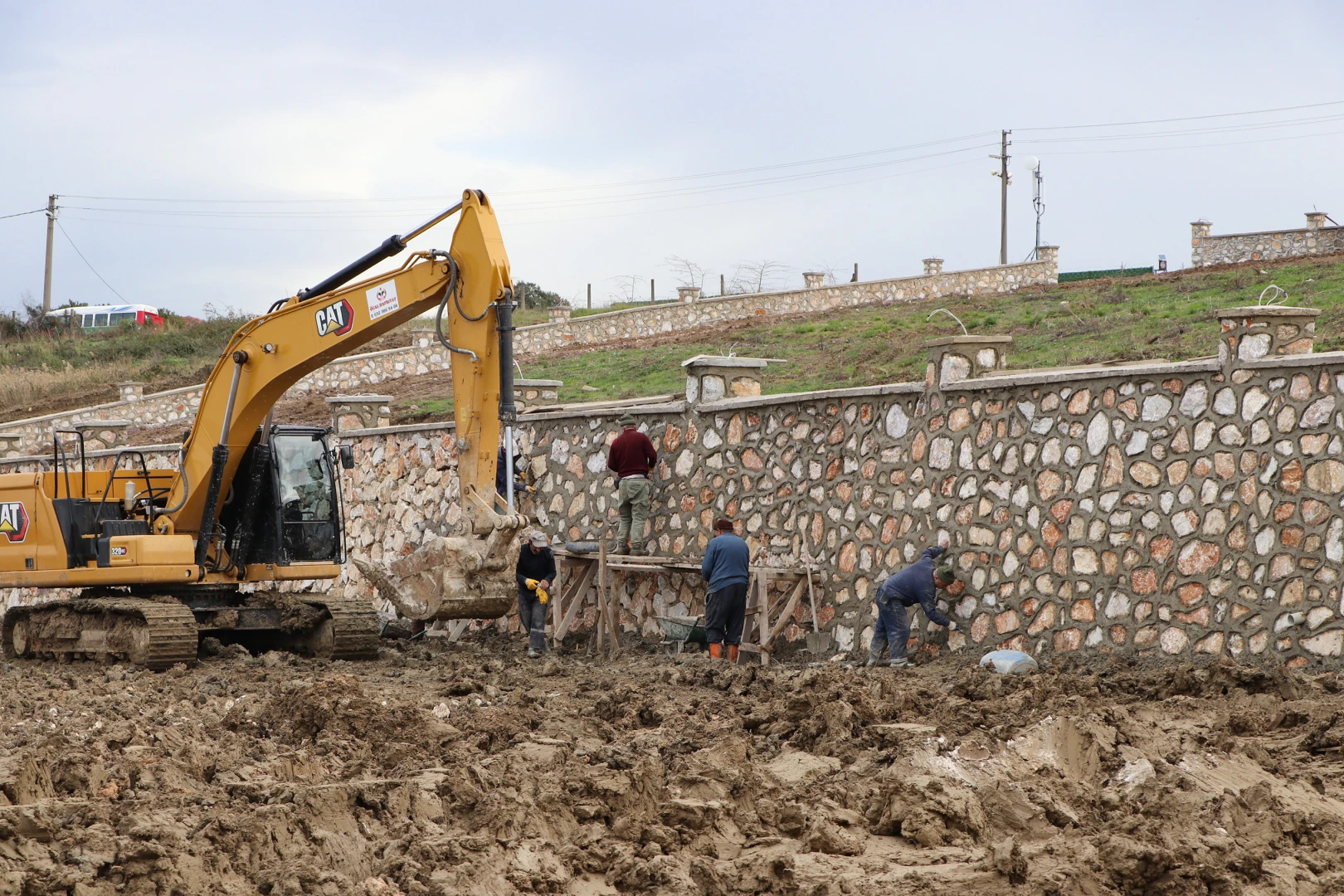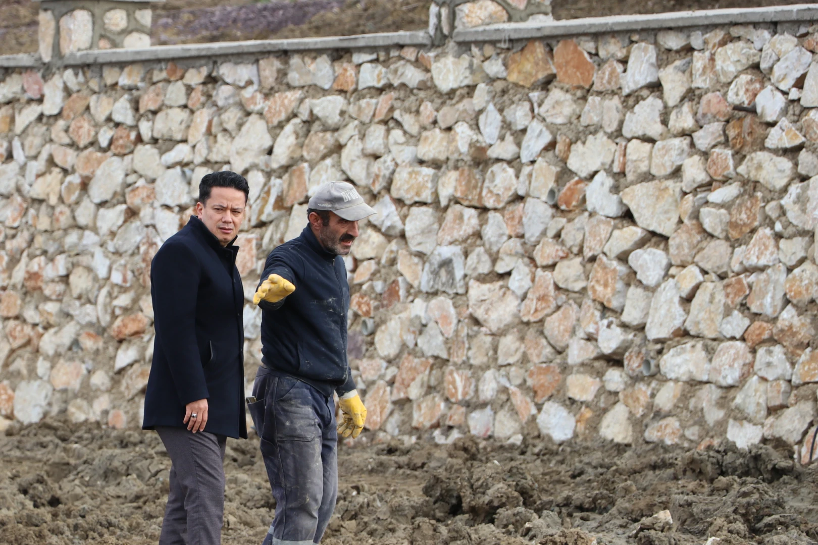 Belediye Fen İşleri Müdürlüğü ekiplerince yürütülen çalışmalar kapsamında alan çevresinde yaklaşık 1000 metrekare taş duvar imalatı gerçekleştirildiğini belirten Çarık, taş duvarların derz işlemlerinin tamamlanmak üzere olduğunu, ardından tel çit montajına geçileceğini ifade etti.