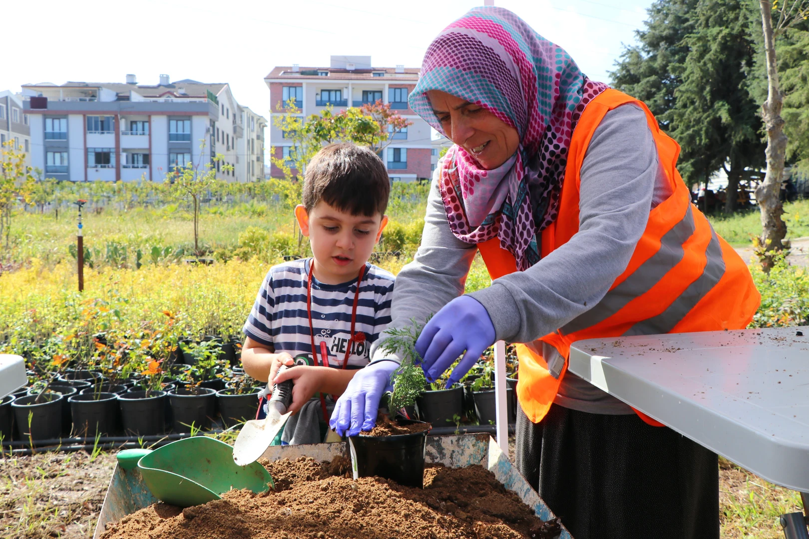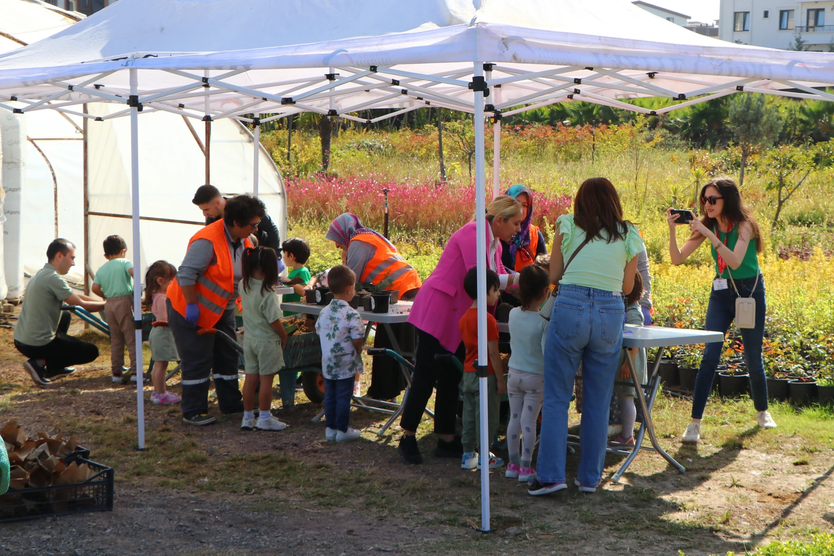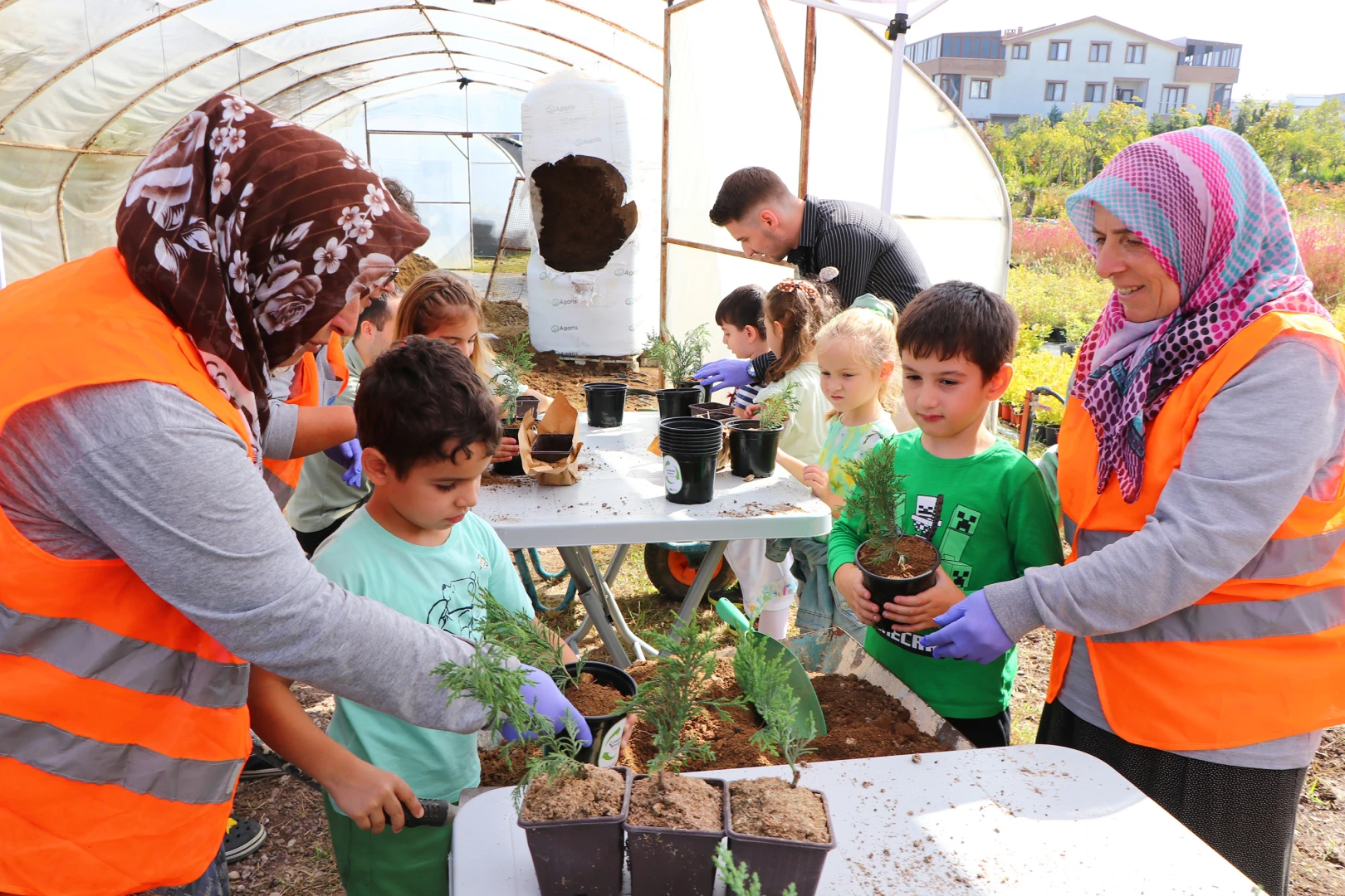 Belediye Park ve Bahçeler Müdür Vekili Emine Yeşim Aras tarafından bitki üretim tesislerinde karşılanan minik öğrencilere Bahçeşehir Koleji Anaokulu Müdür Yardımcısı Şeyda Öztürk’ün yanı sıra anasınıfı öğretmenleri Elçin Karpuz, Yeşim Kılıç, Sema Oktay, Öznur Yıldırım, Hülya Yavaş, Zeynep Aytemir, Elif Kopuz Oral ve Sevtap Kaplan da eşlik etti. Üç sınıf halinde üretim tesisini dolaşan ve burada yetiştirilen bitkiler hakkında bilgiler alan minik öğrenciler, ardından Park ve Bahçeler Müdürlüğü ekiplerinin de yardımlarıyla, belediye tesislerinde üretilen kompost toprağıyla can suyu verilen fideleri saksılarla buluşturdu.