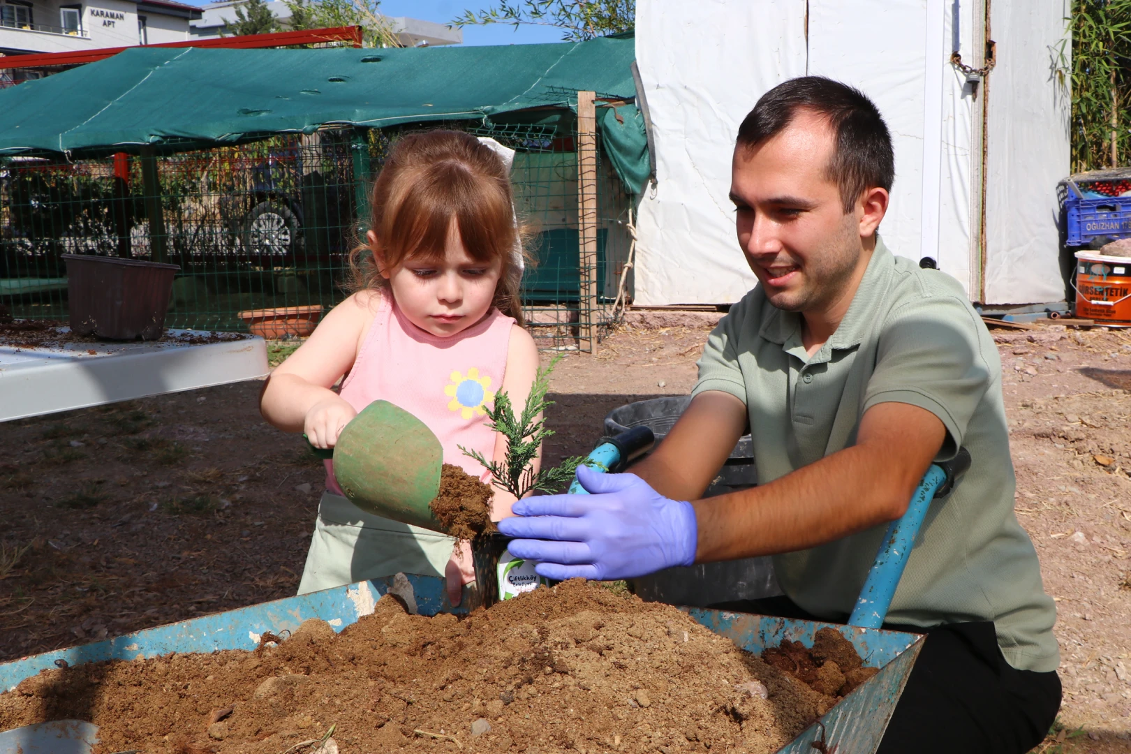 Çiftlikköy Belediyesi tarafından miniklere hediye edilen leylandi fidanlarının okul bahçesine dikileceğini söyleyen Park ve Bahçeler Müdürü Aras, “Yeşil vatanı koruma temasıyla anasınıfı minik öğrencilerinin gerçekleştirdiği bu etkinliğe biz de kompost desteği sağlayarak fidanların saksılara dikilmesine destek sağladık. Bir süre saksılarda büyütülecek olan fidanlar, belli bir olgunluğa ulaştığında okul bahçesinde yer alacak ve 37 öğrencinin her birinin adıyla birer leylandi çamı bahçede onlarla birlikte büyüyecek. Aynı zamanda miniklerimiz için okula başlama hatırası olarak düzenlenen bu etkinliğe biz de Çiftlikköy Belediyesi olarak destek sağladığımız için mutluyuz” diye konuştu.
