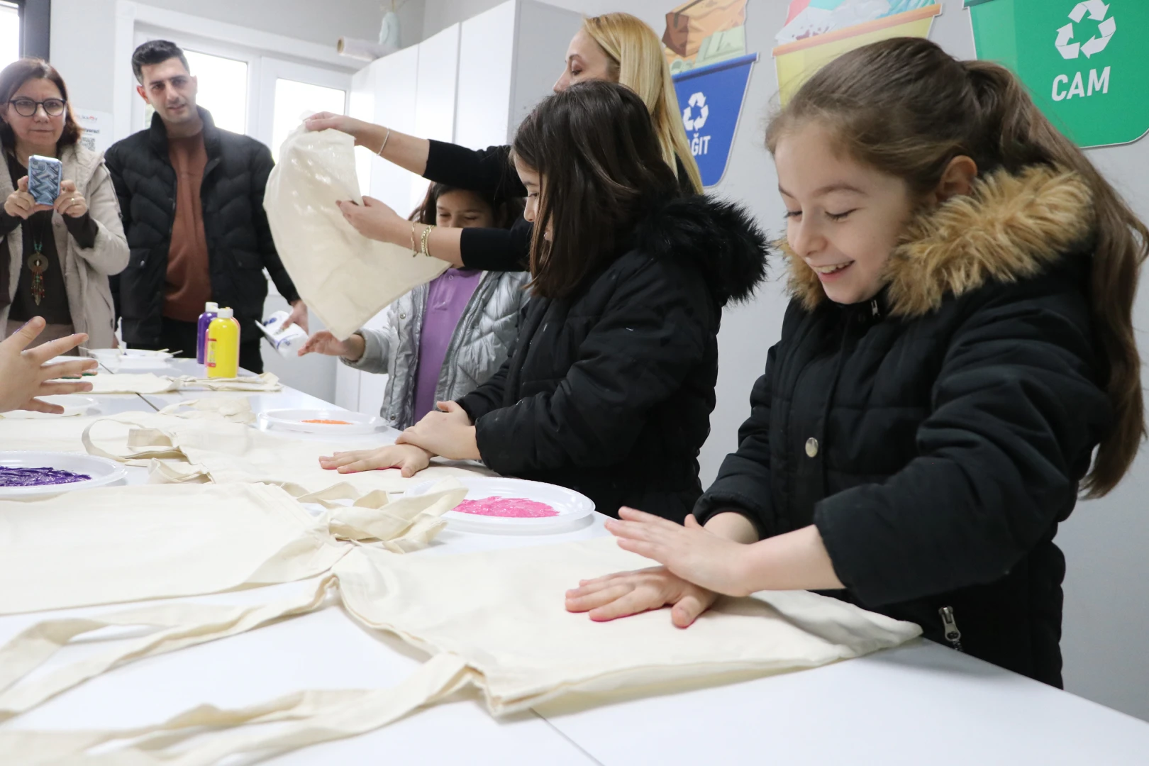 Öğrencilere tesisteki çalışmalar hakkında bilgiler veren Belediye İklim Değişikliği ve Sıfır Atık Müdürü Emine Yeşim Aras, organik malzemelerden ve deniz yosunundan verimli toprak üretiminin yapıldığı kompost tesisini gezdirdi. Geri dönüştürülebilir malzemeler ve bunların ne şekilde yeniden ekonomiye kazandırıldığını anlatan Aras, minik öğrencilerle bez çanta boyama etkinliği de gerçekleştirdi.