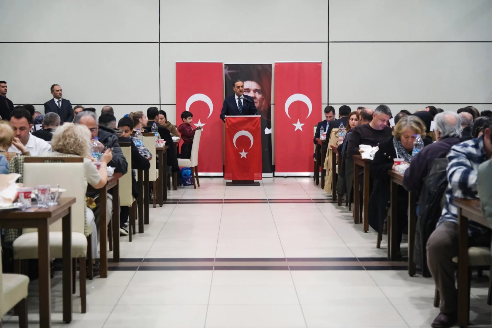 Yalova protokolü, Çiftlikköy’de Şehit ve Gazi Aileleriyle katılımıyla Özdilek AVM’de gerçekleştirilen iftarda bir araya geldi. Yalova Valisi Ahmet Hamdi Usta, Garnizon Komutanı Hv. Plt. Tuğgeneral Mert Uysal, İl Jandarma Komutanı Kd. Alb. Ercan Altın, İl Emniyet Müdürü Yılmaz Delen ve protokol üyelerinin de katıldığı iftara Çiftlikköy Kaymakamı Ali Ada ve Çiftlikköy Belediye Başkanı Adil Yele ev sahipliği yaptı. Çiftlikköy Müftüsü Mehmet Coşkun’un dualarının ardından iftarların açıldığı etkinlikte konuşan Vali Usta, Mübarek Ramazan ayının rahmet ve bereket ikliminde böylesine anlamlı bir iftar sofrasında olmaktan büyük bir onur ve derin bir memnuniyet duyduğunu söyledi.