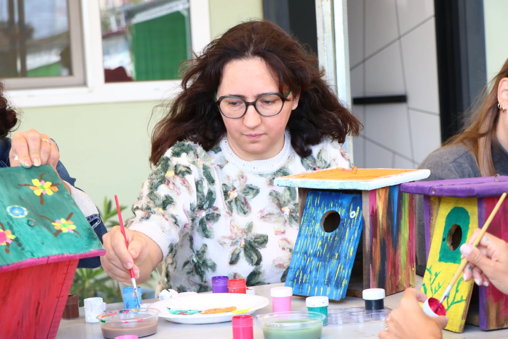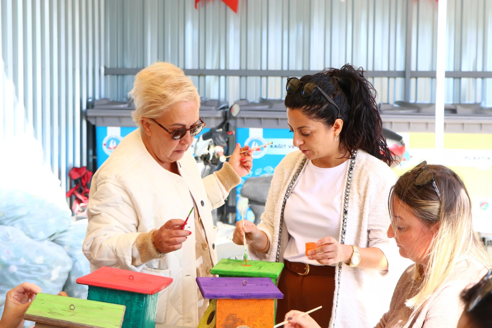 Çiftlikköy Belediyesi İklim Değişikliği ve Sıfır Atık Müdürlüğü’nde, geri dönüşüm atölyelerinin ardından bu kez ‘İleri Dönüşüm Atölyesi’ gerçekleştirildi. Belediye Sıfır Atık Tesisleri’nde yapılan etkinliğe katılan Çiftlikköylü kadınlar, eskiyen ve bakım gerektiren kuş yuvalarını tamir edip renklendirerek yeniden kullanılır hale gelmesini sağladılar. Kuş yuvalarının tamir gerektiren kısımlarında yapılan çalışmanın ardından fırçaları ellerine alan kadınlar, kuş yuvalarını çeşitli renk ve desenlerde boyayarak rengarenk görüntüler oluşturdu. Ardından kullanıma hazır hale gelen kuş yuvaları, yeniden ağaçlardaki yerlerini almadan önce kurumaya bırakıldı.