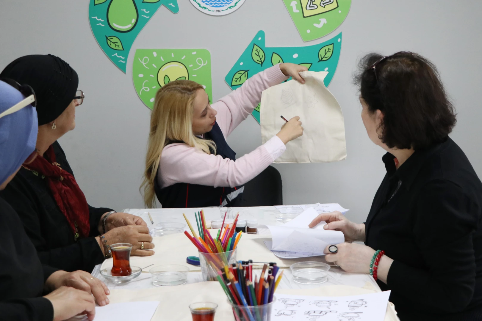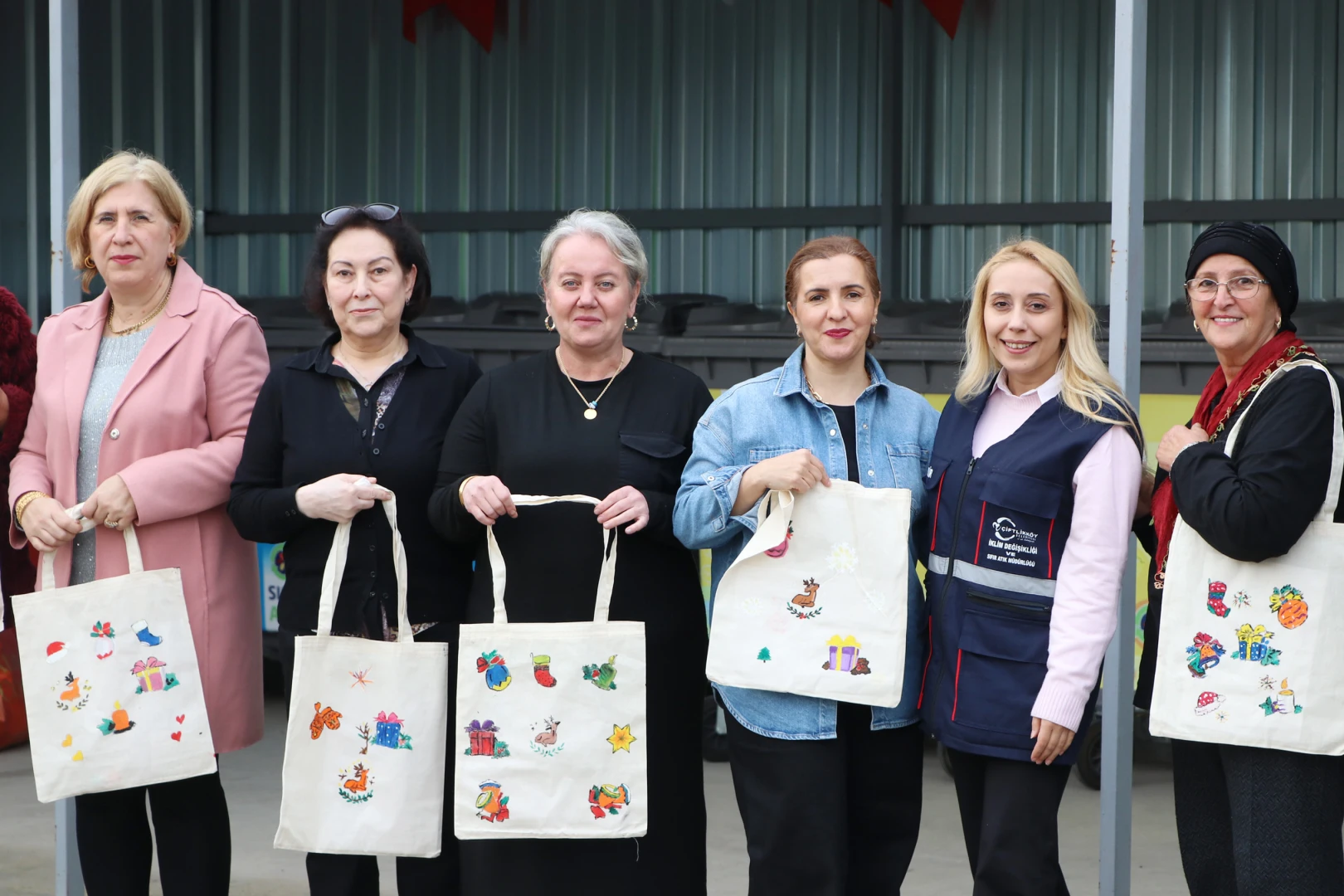 Çiftlikköy Belediyesi İklim Değişikliği ve Sıfır Atık Müdürlüğü’nde bez çanta atölye çalışması gerçekleştirildi. Etkinliğe Çiftlikköy Belediye Başkanı Adil Yele’nin eşi Yeşim Yele’nin yanı sıra Sahil Mahallesi Muhtarı Özlem Yılmaz da katıldı. Belediye Sıfır Atık Tesisleri’nde yapılan etkinlikte bez çantalara çeşitli figürler çizen kadınlar, ardından akrilik boyalarla figürlerini renklendirdi. Rengarenk boyalarla çeşitli desenler oluşturan ekip, etkinlik sonrasında bez çantalarıyla birlikte hatıra fotoğrafı çekildi. Etkinliğe ev sahipliği yapan Belediye İklim Değişikliği ve Sıfır Atık Müdürü Emine Yeşim Aras, geri dönüşümden elde edilen malzemelerle imal edilen bez çantaları daha şık bir görünüme kavuşturmak amacıyla yapılan atölye çalışmasında, aynı zamanda birer tasarım da oluşturulduğunu ifade etti. Aras, “Böylece geri dönüşüme katkı sağlandığı gibi, etkinliğe katılan kadınlarımız kendi estetik anlayışları doğrultusunda el becerilerini de geliştirmiş oluyor” diye bilgi verdi.