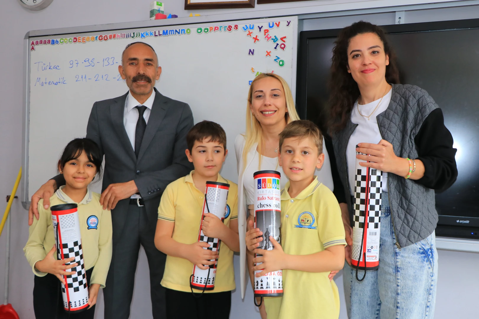 Çiftlikköy Belediyesi İklim Değişikliği ve Sıfır Atık Müdürlüğü, 17 Mayıs Uluslararası Geri Dönüşüm Günü’nde öğrencilere satranç takımları hediye etti.