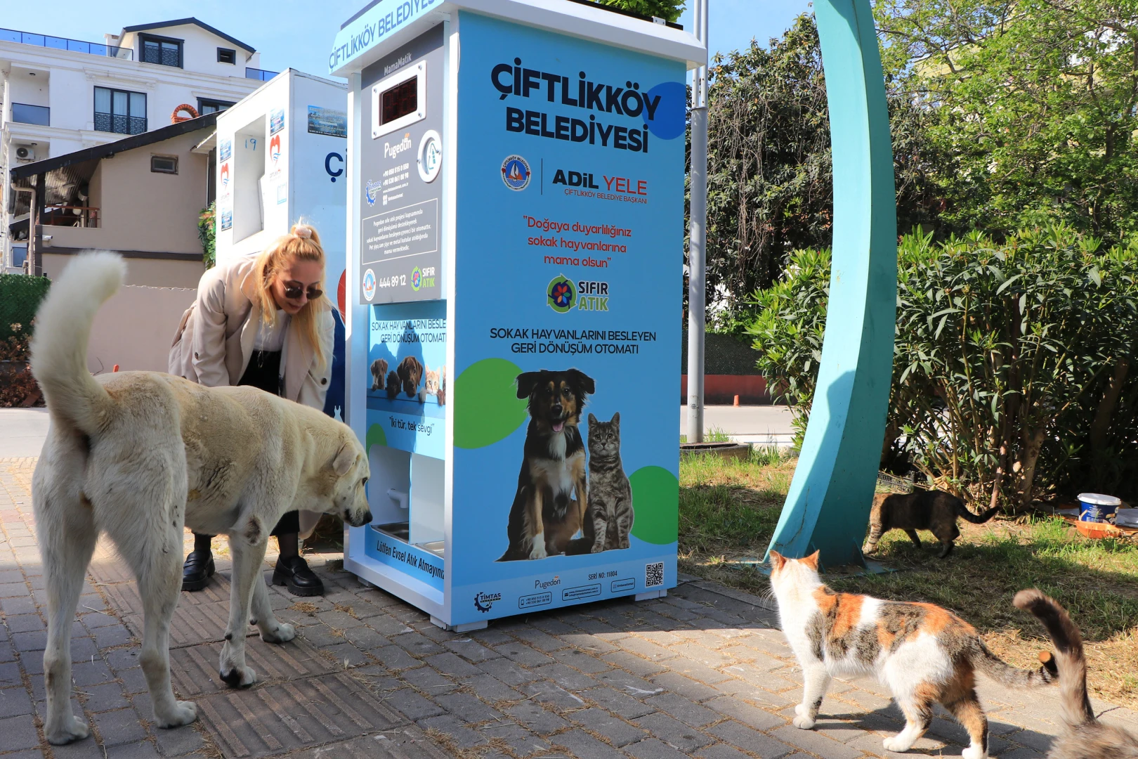 Çiftlikköylü hayvanseverler, geri dönüştürülebilir atık karşılığında mama ve su sağlayan otomatlar sayesinde can dostlara iki yılda yaklaşık 12 tonluk mama desteği sağladı. Çiftlikköy Belediyesi’nin 2024 yılında devreye aldığı otomatlara atılan toplam 120 bin adet geri dönüştürülebilir atık, sokak hayvanları için mama ve su desteği olarak geri döndü.