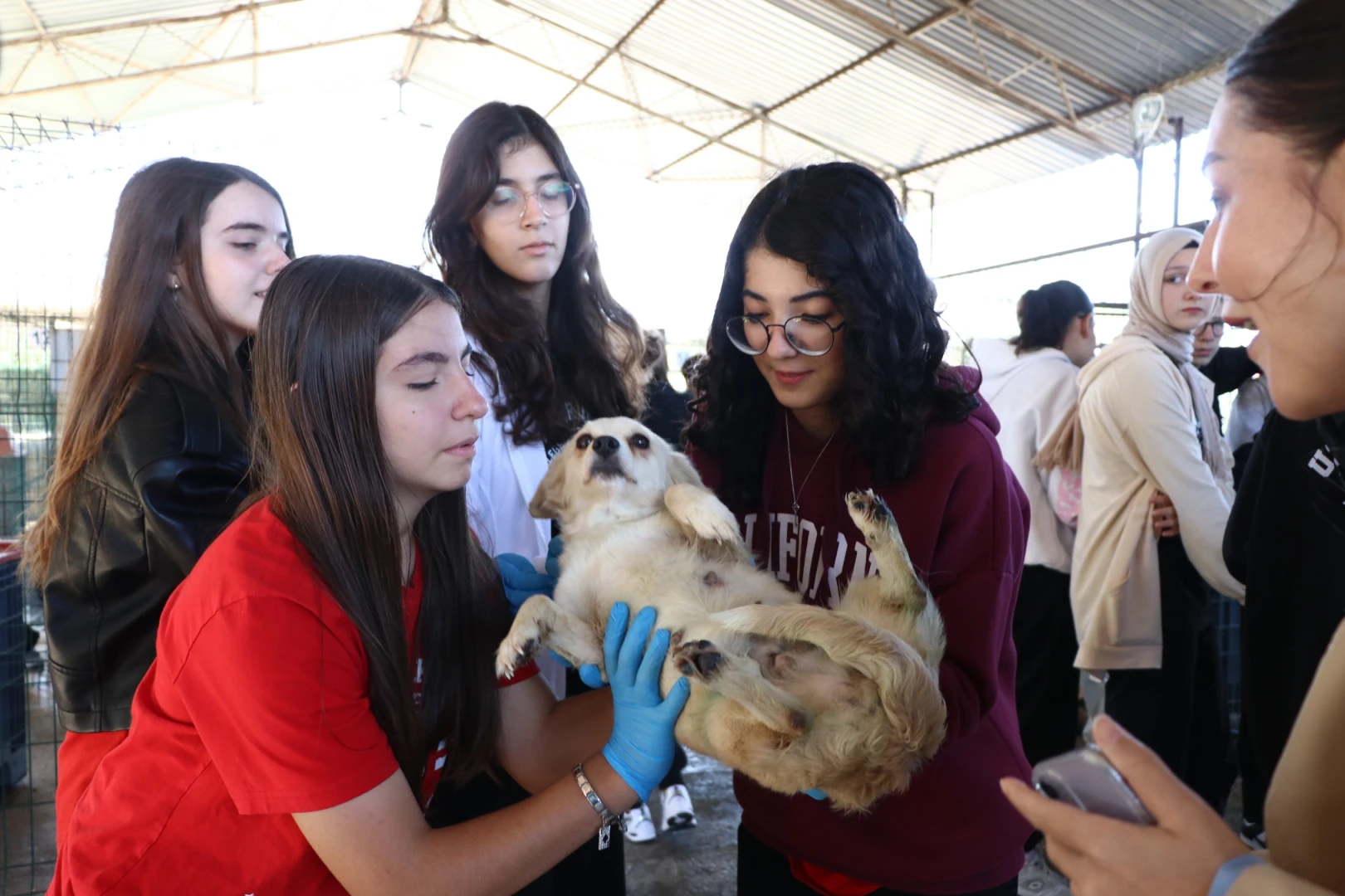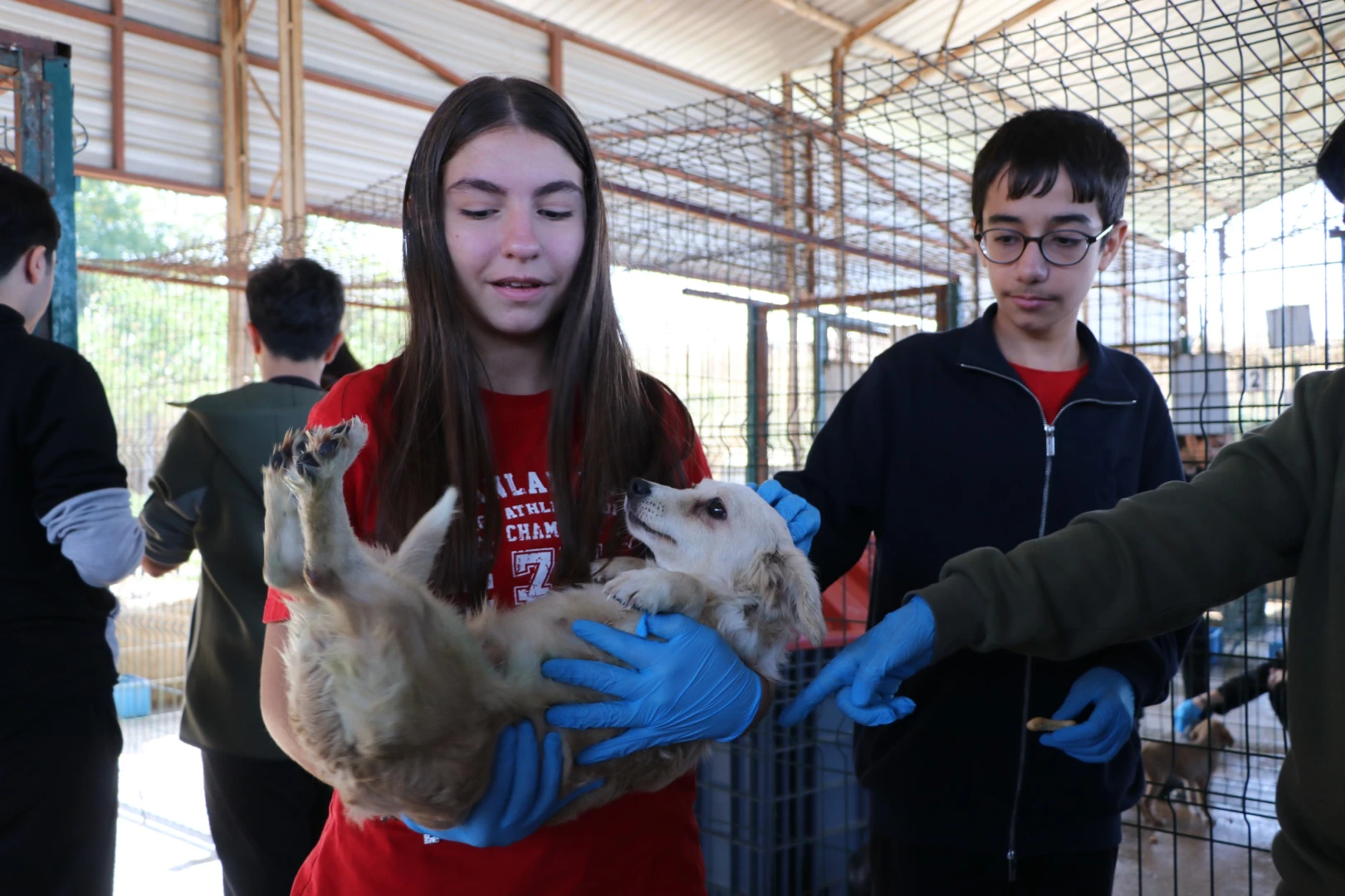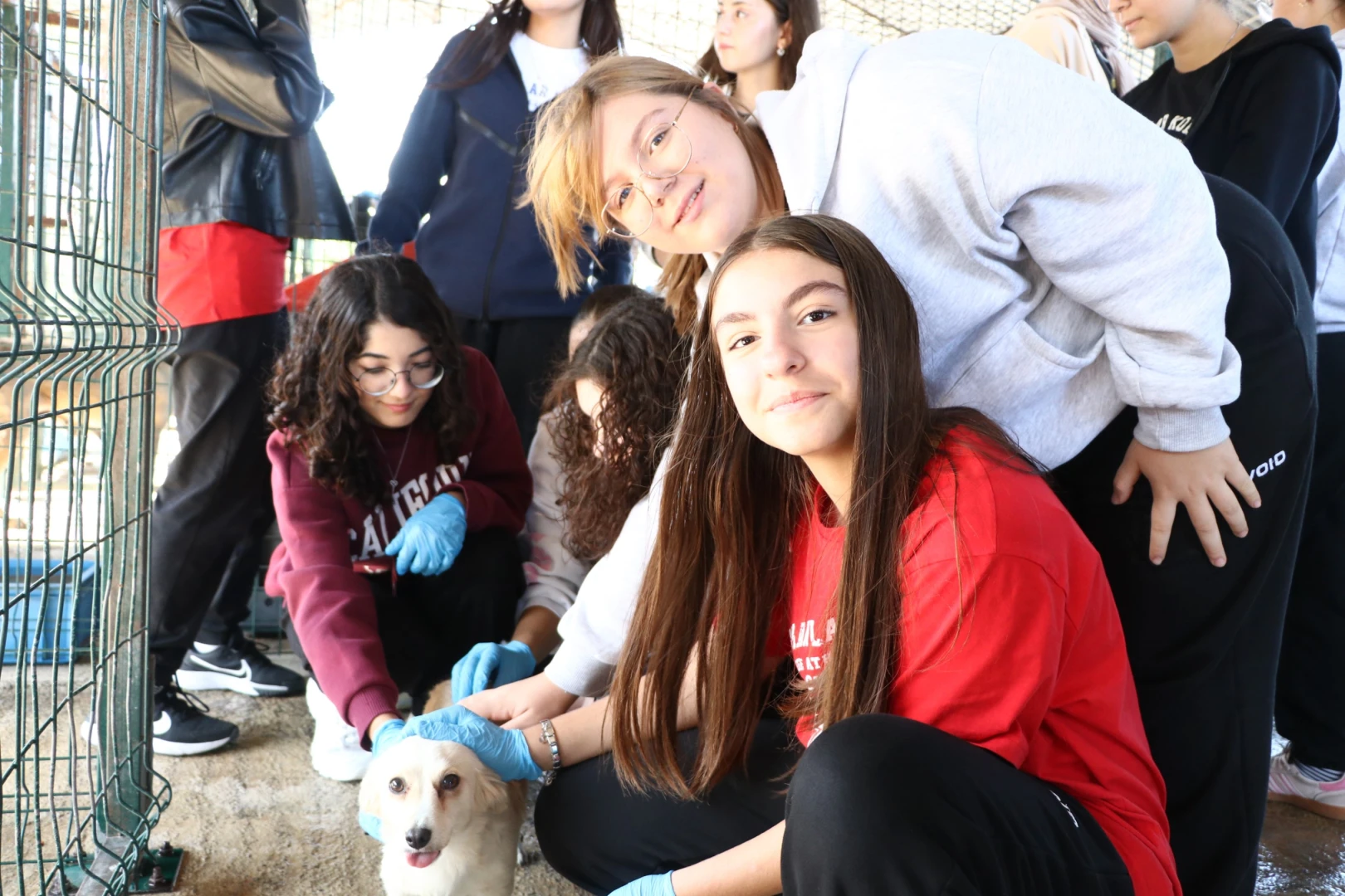Öğretmenleri Ezgi Kaya, İper Çok, Ceyhun Güler ve Dilan Balcı’nın eşlik ettiği lise öğrencilerini Çiftlikköy Belediyesi Veteriner İşleri Müdürü Cevathan Yiğittürk, Veteriner Hekim Berk Sürbahan ve barınak personeli karşıladı. Barınak kurallarıyla ilgili olarak Veteriner Hekim Sürbahan’dan kısa bir brifing alan öğrenciler, ardından gruplar halinde barınağın içine girerek bakım ve tedavi gören sokak hayvanlarıyla bir araya geldi. Yanlarında getirdikleri kedi ve köpek mamalarını can dostlarına elleriyle veren öğrenciler, yavru köpekleri kucaklarına alıp sevgilerini gösterme imkanı da buldu.