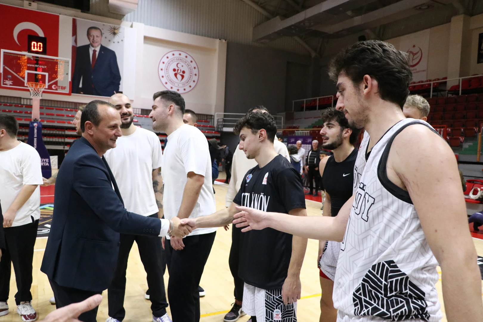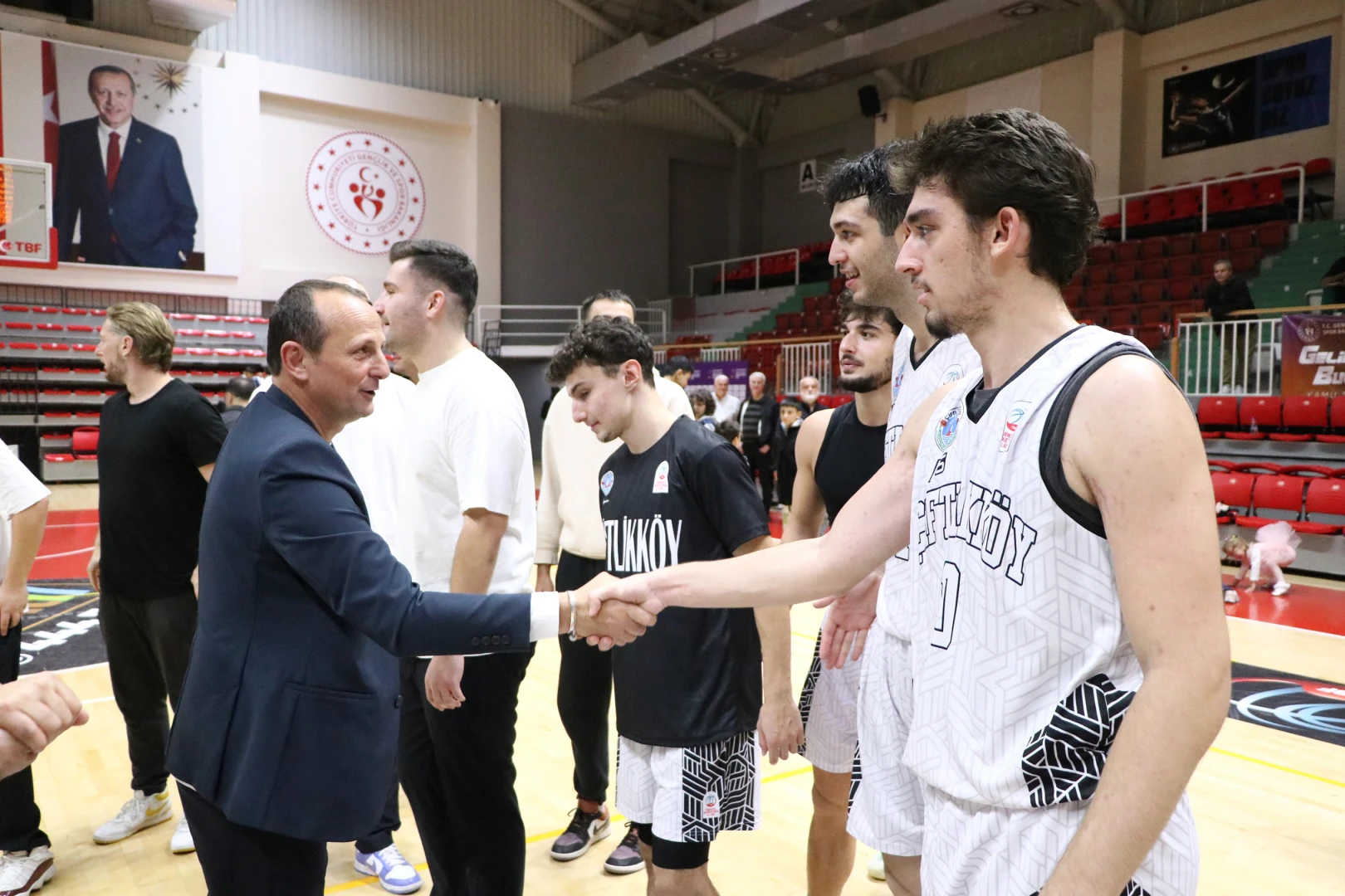 Mücadeleyi, CHP’li belediye meclis üyeleri ve Belediyespor yönetimiyle birlikte tribünden takip eden Çiftlikköy Belediye Başkanı ve Belediyespor Başkanı Adil Yele, maç sonunda parkeye inerek oyuncuları ve teknik ekibi tebrik etti.