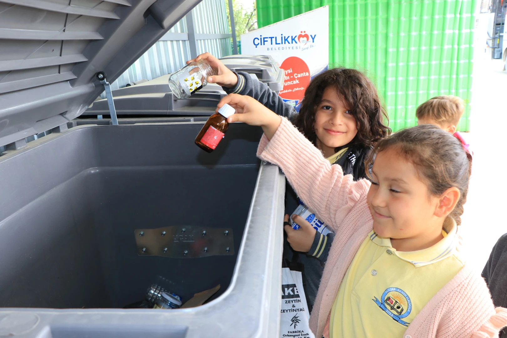 Çiftlikköy Belediyesi 1. Sınıf Atık Getirme Merkezi’ni ziyaret eden Ruhsar Aksoy İlkokulu’nun minik öğrencileri, geri dönüşüm süreçlerini ve organik toprak üretimini yerinde öğrendi.