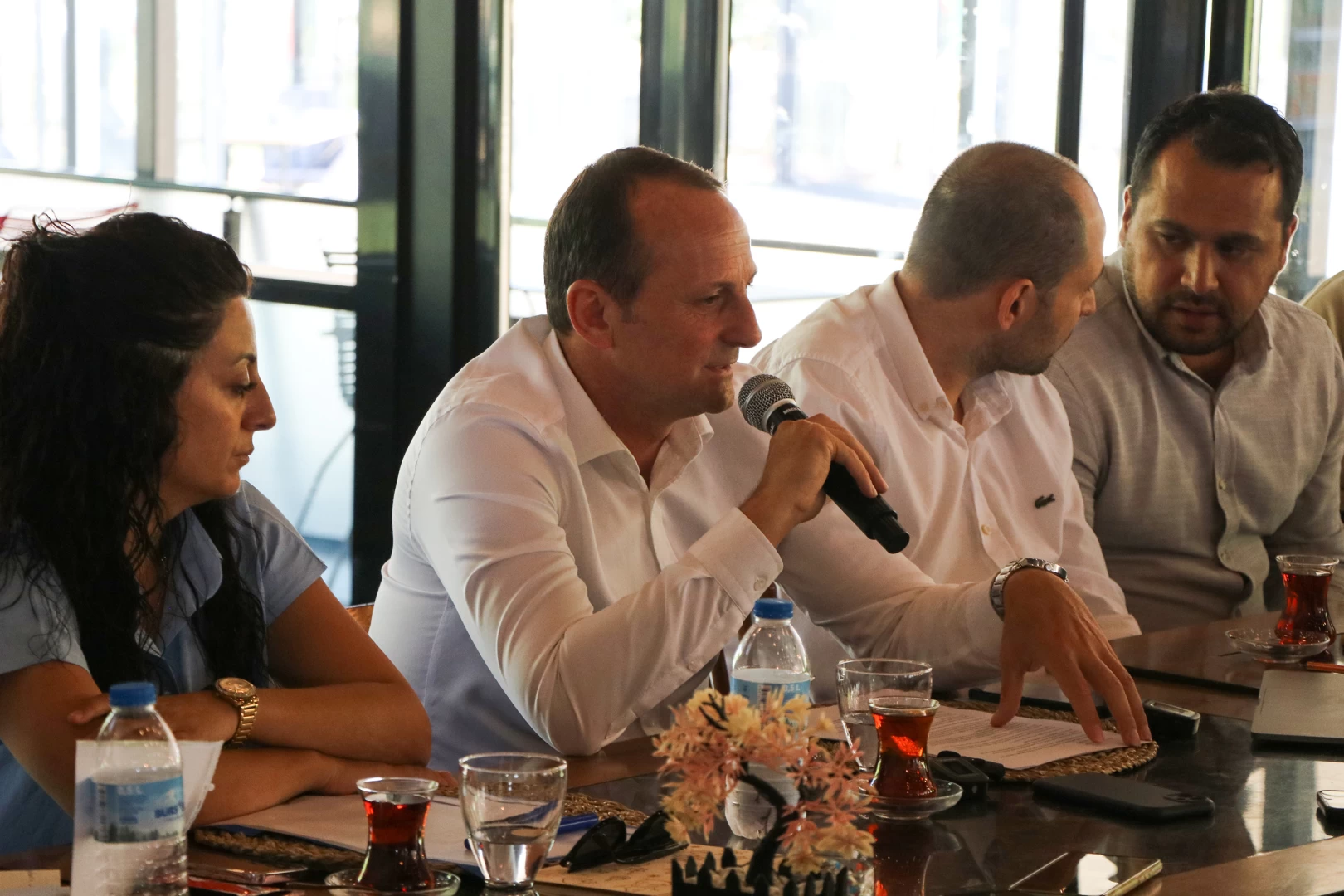 Saklı Bahçe Sosyal Tesisleri’nde yerel ve ulusal basın temsilcileriyle bir araya gelen Çiftlikköy Belediye Başkanı Adil Yele, göreve başladıktan sonra geçen 4 aylık süreçte yapılan çalışmaları anlattı. Seçimlerin ardından görevi teslim aldıktan sonra hızlı bir yapılanma sürecine girdiklerini kaydeden Başkan Yele, “Birim müdürü arkadaşlarımızla beraber hızlı bir şekilde hareket edip Çiftlikköy’deki elzem sorunlarakısa vadede çözüm bulduğumuzu düşünüyorum” dedi. Beklenen Marmara depremiyle ilgili alınması gereken önlemler konusunda çalıştıklarını belirten Başkan Yele, “Bildiğiniz üzere bir deprem bölgesinde yaşıyoruz, depremle alakalı almamız gereken önlemler var. Nasıl bir doğal afetle karşılaşacağımız da belli değil. Bunun için afet işleri müdürlüğümüzü hızlı bir şekilde aktif hale getirebilecek hamleler yaptık. 17 adet toplanma alanı var Çiftlikköyümüzde, bunları tespit ettik. 17 adet konteynırımızı kendi garajımızda imal edip bunu 17 bölgemize dağıttık. Afet İşleri Müdürlüğümüzün altına Kentsel Dönüşüm Şefliği kuruyoruz. Vatandaşın kentsel dönüşümle ilgili sorularını yanıtlayacak bir birim olacak. Ve bununla alakalı planlama çalışmalarımız da devam ediyor. İmar planlarıyla ilgili bir revize çalışması başlattık, bununla ilgili bir meclis kararı aldık. Bu karar doğrultusunda bölgemizde bulunan beş katlı binaların kentsel dönüşüme kazandırılması amacıyla imar planlarıyla ilgili revize çalışmalarımız olacak. Çünkü en önemli şey insan canı, candan öte hiçbir şey yok” diye konuştu.
