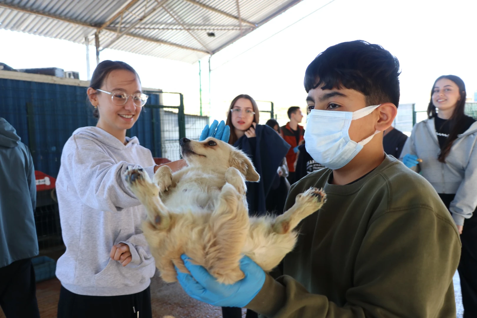 Öğretmenleri Ezgi Kaya, İper Çok, Ceyhun Güler ve Dilan Balcı’nın eşlik ettiği lise öğrencilerini Çiftlikköy Belediyesi Veteriner İşleri Müdürü Cevathan Yiğittürk, Veteriner Hekim Berk Sürbahan ve barınak personeli karşıladı. Barınak kurallarıyla ilgili olarak Veteriner Hekim Sürbahan’dan kısa bir brifing alan öğrenciler, ardından gruplar halinde barınağın içine girerek bakım ve tedavi gören sokak hayvanlarıyla bir araya geldi. Yanlarında getirdikleri kedi ve köpek mamalarını can dostlarına elleriyle veren öğrenciler, yavru köpekleri kucaklarına alıp sevgilerini gösterme imkanı da buldu.