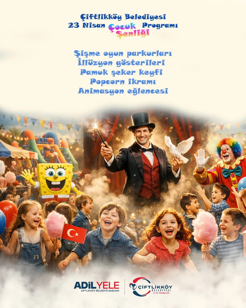 Çiftlikköy’de 23 Nisan Ulusal Egemenlik ve Çocuk Bayramı, bu yıl da çocuklar için adeta büyük bir şenliğe dönüşüyor. Belediye Kapalı Halı Sahası’nda düzenlenecek Çocuk Şenliği ile bayram coşkusu gün boyu sürecek.