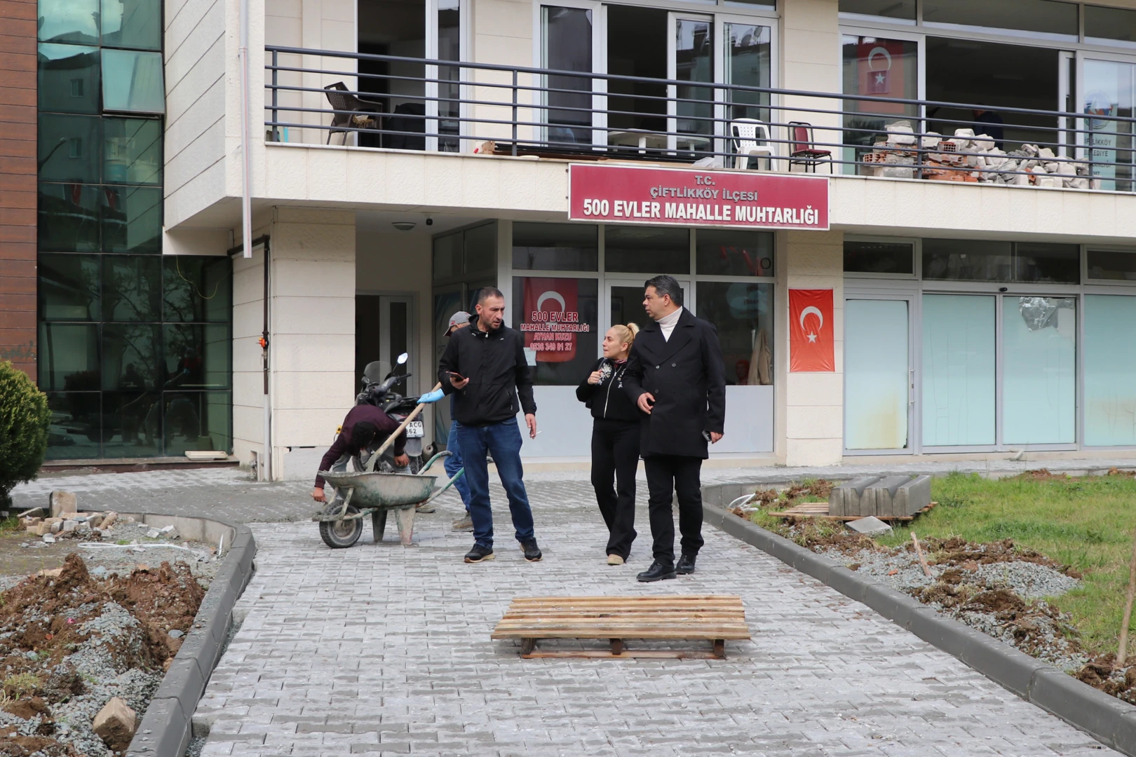 Çiftlikköy Belediye Başkanı Adil Yele, CHP İl Başkanı Erdem Doğancı ve Belediye birim müdürleri ile birlikte yenileme çalışmalarının son aşamaya geldiği 500 Evler Mahallesi’ndeki Şehit Türkan Bebek Kültür Merkezi’nde incelemelerde bulundu.