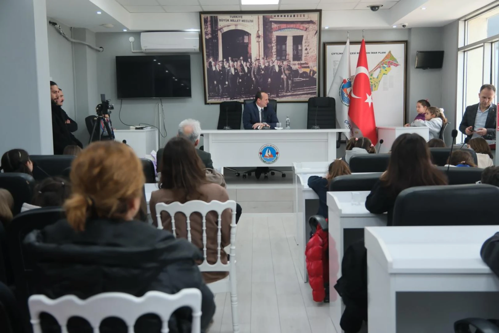 Bahçeşehir Koleji İlkokul Müdürü Mesut Çağlar, sınıf öğretmenleri Elçin Garipoğlu, Gizem Topbaş ve Yeliz Şenol’le birlikte belediye meclis salonunu dolduran öğrenciler, Başkan Yele ile tanışmalarının ardından meraklarını gidermek için pek çok soru sordu. Sorulara içtenlikle yanıt veren Başkan Yele, öğrencilerin talep ve önerilerini de ilgiyle dinledi.