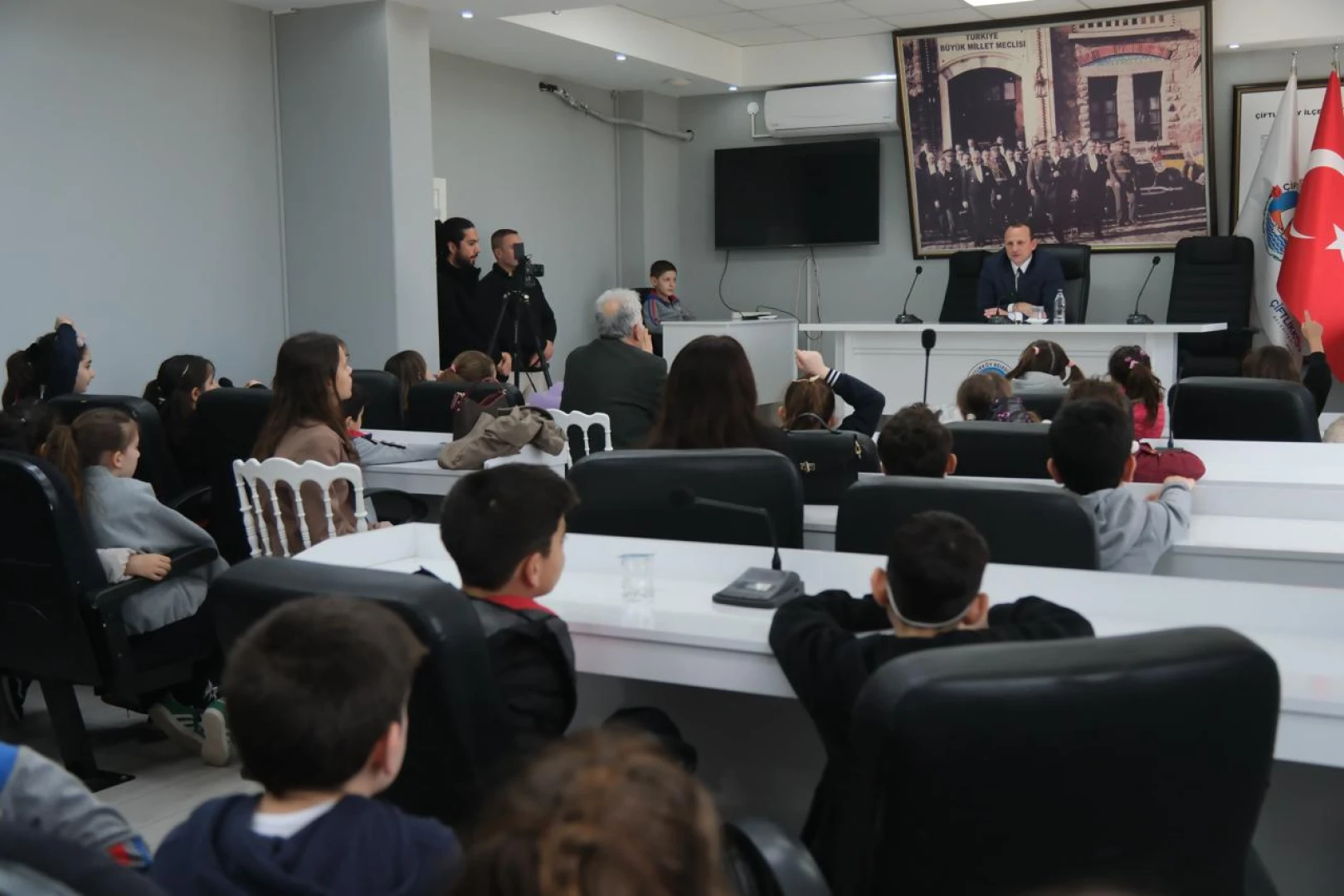Öğrencilerle yaptığı keyifli sohbette Çiftlikköy Belediyesi’ndeki çalışmaların ne şekilde yürütüldüğünden söz eden Başkan Yele, “Hayat Bilgisi derslerinde işledikleri yerel birimler konusunu yerinde öğrenmek için belediyemizi ziyaret eden yavrularımızla çok keyifli bir sohbet gerçekleştirdik. Merak ettikleri soruları içtenlikle sordular, ben de büyük bir keyifle yanıtladım. Çocuklarımızın çevre bilinci, geri dönüşüm konusundaki duyarlılığı ve güzel düşünceleri beni gerçekten umutlandırdı. Gelen isteklerini de tabii ki geri çevirmeden yapacağız” dedi.