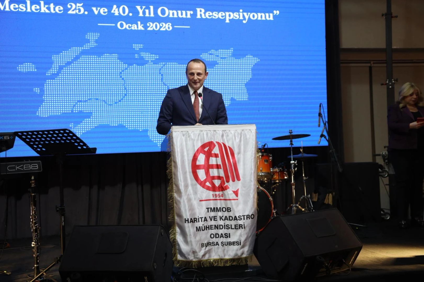 Programın açılış konuşmasını yapan HKMO Bursa Şube Başkanı İlter Tokdemir, harita mühendisliğinin teknik bir disiplin olmanın ötesinde olduğunu vurgulayarak, kentlerin planlanmasında, kamusal alanların düzenlenmesinde, mülkiyet hakkının korunmasında ve toplumsal yaşamın sağlıklı biçimde sürdürülebilmesinde vazgeçilmez bir role sahip olduğunu kaydetti. Ardından meslekte 25. ve 40. Yıllarını dolduran harita mühendislerine plaketleri takdim edildi.