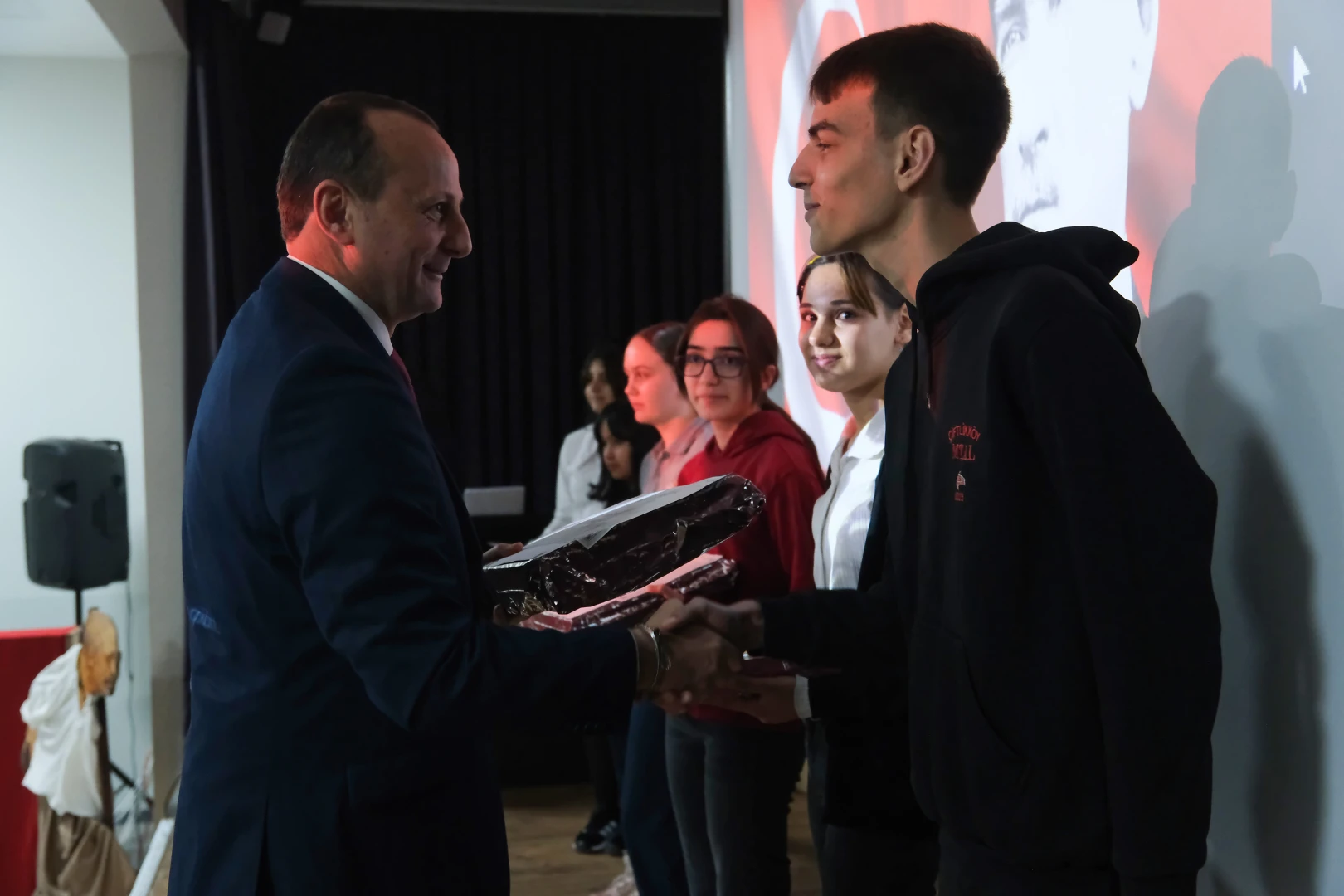 Okul öğrencilerinin hazırladığı oratoryo ve skeç gösterisinin ardından 18 Mart Şehitler Günü kapsamında düzenlenen resim, şiir ve hikaye yarışmalarında derece alan öğrencilere ödülleri takdim edildi. Sultaniye Şehit Baçerettin İlkokulu’ndan Hajar Ayoobi, Şehit Talha Bahadır Ortaokulu’ndan Hayrünnisa Öztürk ve Tuana Zeynep Turğay, Mehmet Akif İnan Ortaokulu’ndan Fatmanur Tuncer ve ÇAAL Öğrencisi Melis Yürüklü, birincilik ödüllerini İlçe Kaymakamı Ali Ada’nın elinden aldı. Yarışmalarda derece alan diğer öğrencilere de ödüllerini Garnizon Komutanı Uysal ve Başkan Yele takdim etti. Etkinlikler, alay marşının okunması ve video gösterimleri sonrasında Çanakkale Savaşı’nı anlatan türkülerin seslendirilmesiyle birlikte sona erdi.