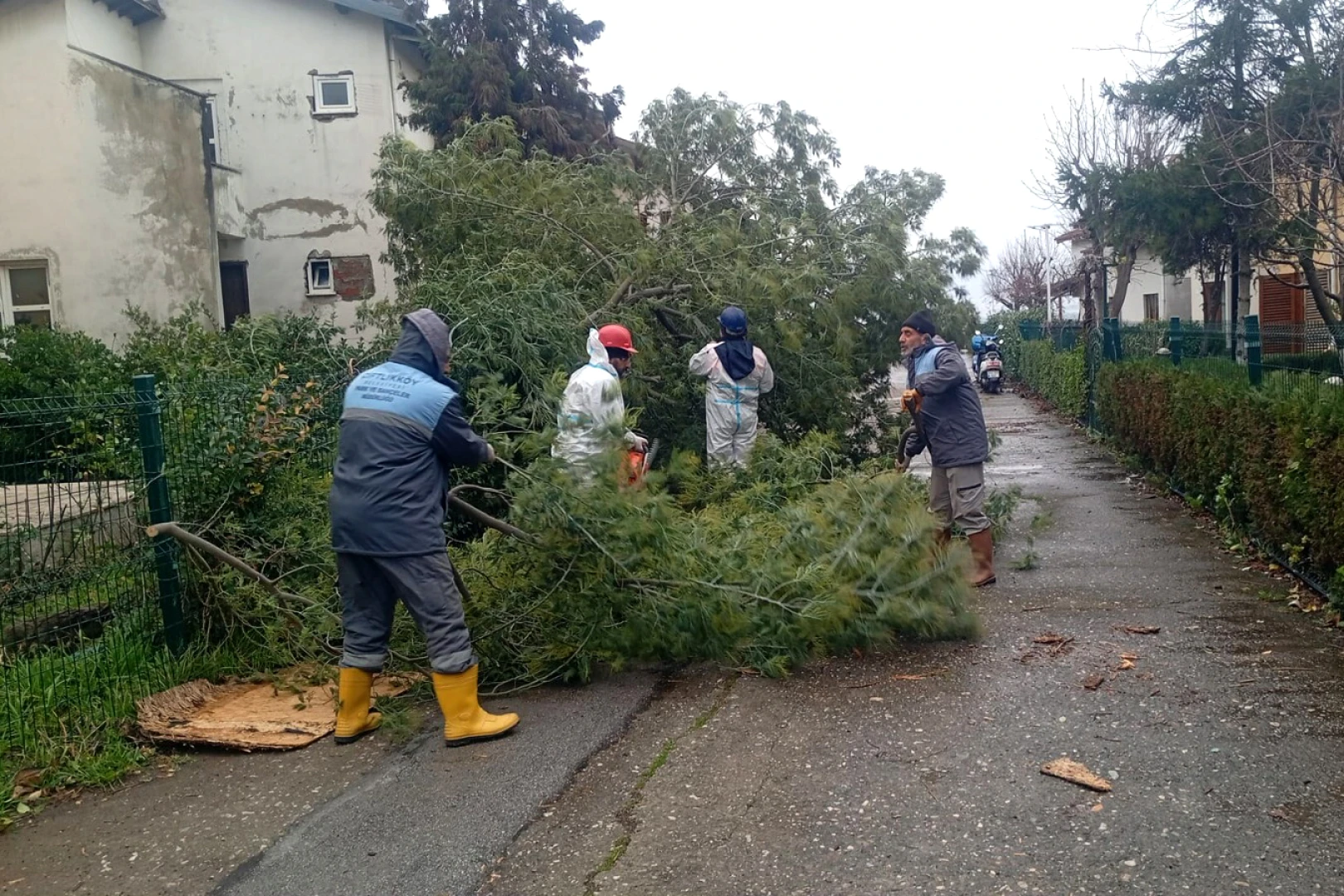 Çiftlikköy’de çok sayıda ağaç fırtına nedeniyle devrilirken, çatılar yerinden uçtu, elektrik direkleri devrildi. Çiftlikköy Belediyesi’nin Afet İşleri Müdürlüğü, İtfaiye Müdürlüğü, Park ve Bahçeler Müdürlüğü ile Fen İşleri Müdürlüğü ekiplerinin sahada durum kontrolü yaptığını ve itfaiye ekiplerinin gelen ihbarlara hızlı bir şekilde müdahale ettiğini dile getiren Çiftlikköy Belediye Başkanı Adil Yele, vatandaşları da fırtına nedeniyle yaşanabilecek olumsuz durumlarla ilgili dikkatli olmaları konusunda uyardı.