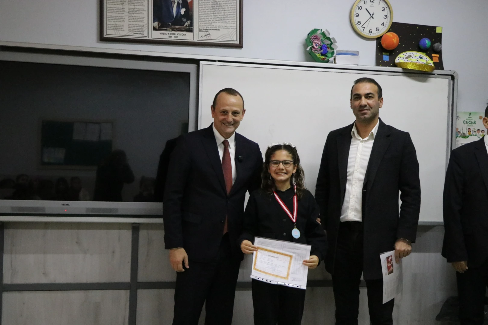 Protokol üyeleri; Ruhsar Aksoy İlkokulu ve Abdulhamit Kaya Ortaokulu’nda sınıfları ziyaret ederek öğrencilerin karne sevincini paylaştı.