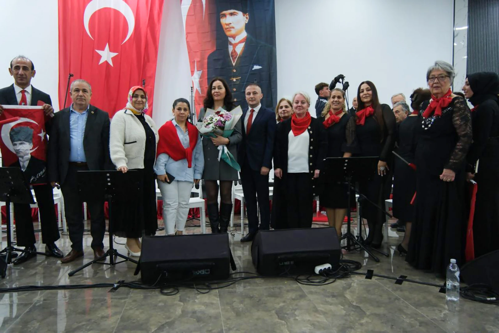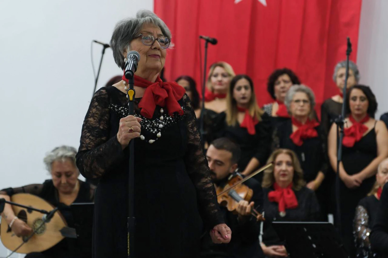 ‘Nazende Sevgilim’, ‘Adalardan Bir Yar Gelir Bizlere’, ‘Muhabbet Bağına Girdim Bu Gece’ gibi birbirinden güzel sanat müziği eserlerinin hep bir ağızdan söylendiği gecede, koro solistleri Perihan Köroğlu, Arzu Yavaş, Bella Yüksel, Derya Özçağdaş, Ahmet Sönmez, Gülay Alagöz, Gökçe Köroğlu Yeyinmen, Fatma Altıntay, Derya Erzik, Şükriye Albay, Gülsüm Erman, Beyza Avşar, Gülser Korkmaz ve Nur Soner’in Hicaz, Hüseyni ve Kürdili Hicazkar makamlarında seslendirdiği şarkılarla izleyenlerden alkış aldı. Türk bayraklarının coşkuyla dalgalandığı İzmir Marşı ile doruk noktasına ulaşan gecenin sonunda, konserin sunuculuğunu yapan Güzin Aydemir ve Koro Şefi Gökçe Köroğlu Yeyinmen’e çiçek ve hediyelerini Belediye Başkan Yardımcısı Deniz Civelek takdim etti.