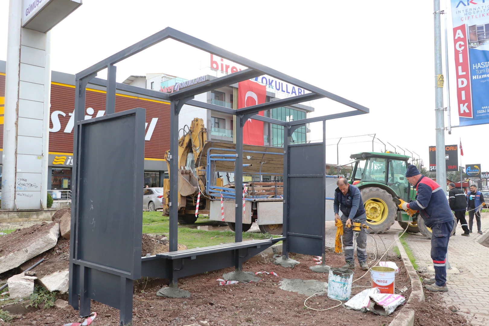 Çiftlikköy Belediyesi’nin ilçe genelinde başlattığı durak yenileme çalışmaları devam ediyor. Otobüs ve minibüs güzergahlarında kullanılan eski tip duraklar, belediyenin kendi kaynak atölyesinde üretilen yeni nesil modellerle değiştiriliyor.