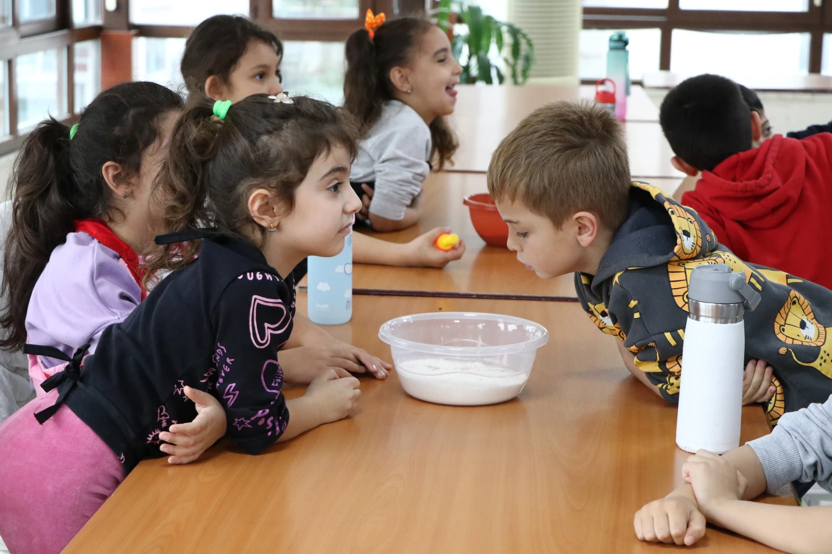 Belediye Kültür Merkezi’nde sürdürülen ve 7–14 yaş arası çocuklara yönelik Akıl Zeka Oyunları, Robotik Kodlama ve Satranç kurslarında minikler yeni beceriler kazanıyor. Akıl Zeka Oyunları ve Robotik Kodlama kurslarında zaman zaman ortak atölye çalışmaları gerçekleştirdiklerini belirten Robotik Kodlama Öğretmeni Derya Tayhan Kütük, organik oyun hamuru üretimi gibi çocukların ev ortamında da üretken olabilecekleri etkinliklere de yer verdiklerini ifade etti. Kütük, ortak çalışmada un, bebe yağı ve su kullanılarak organik oyun hamuru yapımı gerçekleştiren miniklerin, hem üretim sürecini deneyimlediğini hem de ortaya çıkan ürünlerle keyifli vakit geçirdiğini söyledi.