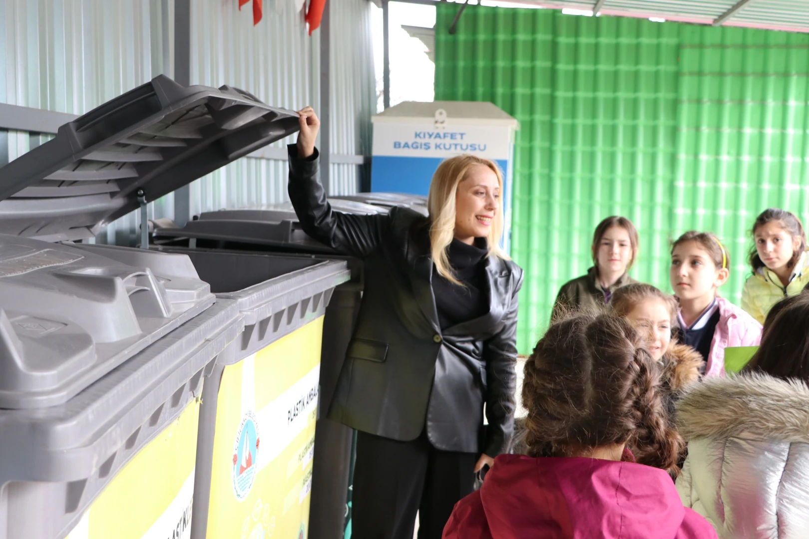 Öğrencilere tesisteki çalışmalar hakkında bilgiler veren Belediye İklim Değişikliği ve Sıfır Atık Müdürü Emine Yeşim Aras, organik malzemelerden ve deniz yosunundan verimli toprak üretiminin yapıldığı kompost tesisini gezdirdi. Geri dönüştürülebilir malzemeler ve bunların ne şekilde yeniden ekonomiye kazandırıldığını anlatan Aras, minik öğrencilerle bez çanta boyama etkinliği de gerçekleştirdi.