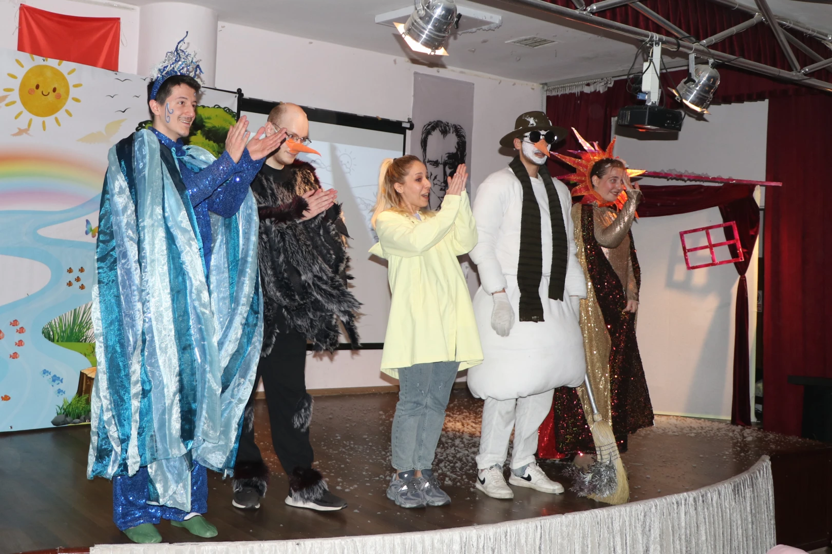 Çiftlikköy Belediyesi’nin 23 Nisan Çocuk Bayramı kapsamında düzenlediği ‘Çocuk Tiyatrosu Şöleni’, Belediye Kültür Merkezi’nde sahnelenen ‘Kardan Adam’ adlı interaktif çocuk oyunuyla başladı. İki seans olarak sahnelenen oyunda Çiftlikköy Ruhsar Aksoy İlkokulu öğrencileri, kardan adamın hikayesi üzerinden fedakarlık, sevgi, paylaşım ve doğa bilincini öğrendi. İnteraktif oyunu izleyen öğrenciler, oyunun çeşitli bölümlerine katılma heyecanını da yaşadı. Ekrem Bozgül’ün yönettiği ve Neşe Tunç’un Sunay Akın öykülerinden esinlenerek sahneye uyarladığı oyunda Galeta Çocuk Tiyatrosu oyuncuları sahne aldı.