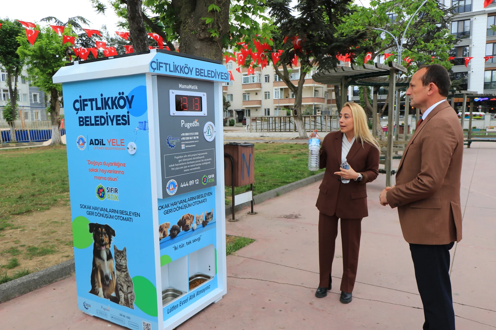 Çiftlikköylü hayvanseverler, geri dönüştürülebilir atık karşılığında mama ve su sağlayan otomatlar sayesinde can dostlara iki yılda yaklaşık 12 tonluk mama desteği sağladı. Çiftlikköy Belediyesi’nin 2024 yılında devreye aldığı otomatlara atılan toplam 120 bin adet geri dönüştürülebilir atık, sokak hayvanları için mama ve su desteği olarak geri döndü.
