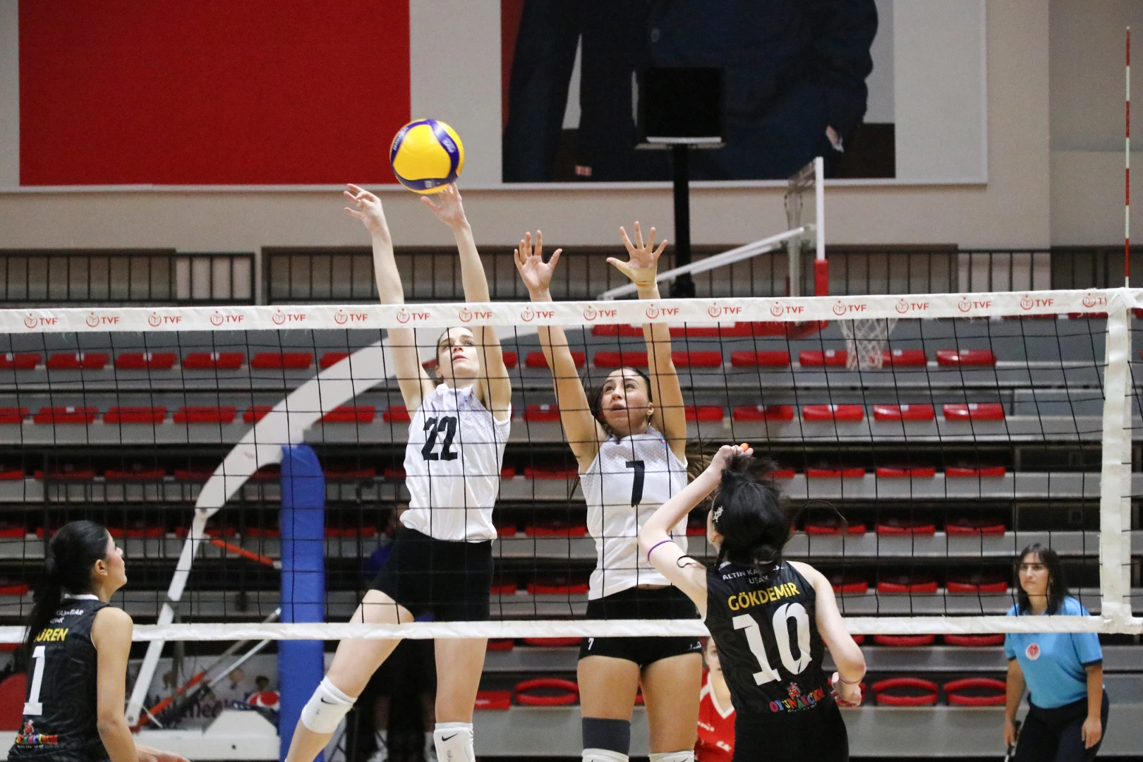 Karşılaşmaya Doğa, Zeza, Buse, Libero Tuğba, Zehra ve Eylül altısıyla başlayan Çiftlikköy’ün Sultanları, ilk sette Uşak ekibinin beklenmedik direnci ile karşılaştı. Karşılıklı sayılarla geçilen ilk 13 dakikanın ardından AL-KA kızları, 14-13’le mücadelede ilk kez öne geçti. Yağmur Gökdemir’in seri servisleriyle avantajını koruyan AL-KA, setin son bölümüne de 22-21’lik skor avantajıyla girdi. Çiftlikköy ekibinde Antrenör Mihrican Deviren teknik mola hakkını kullanırken, Doğa’nın son servisi dışarı gidince ilk setin galibi 25-22 ile Altın Kanatlar oldu.