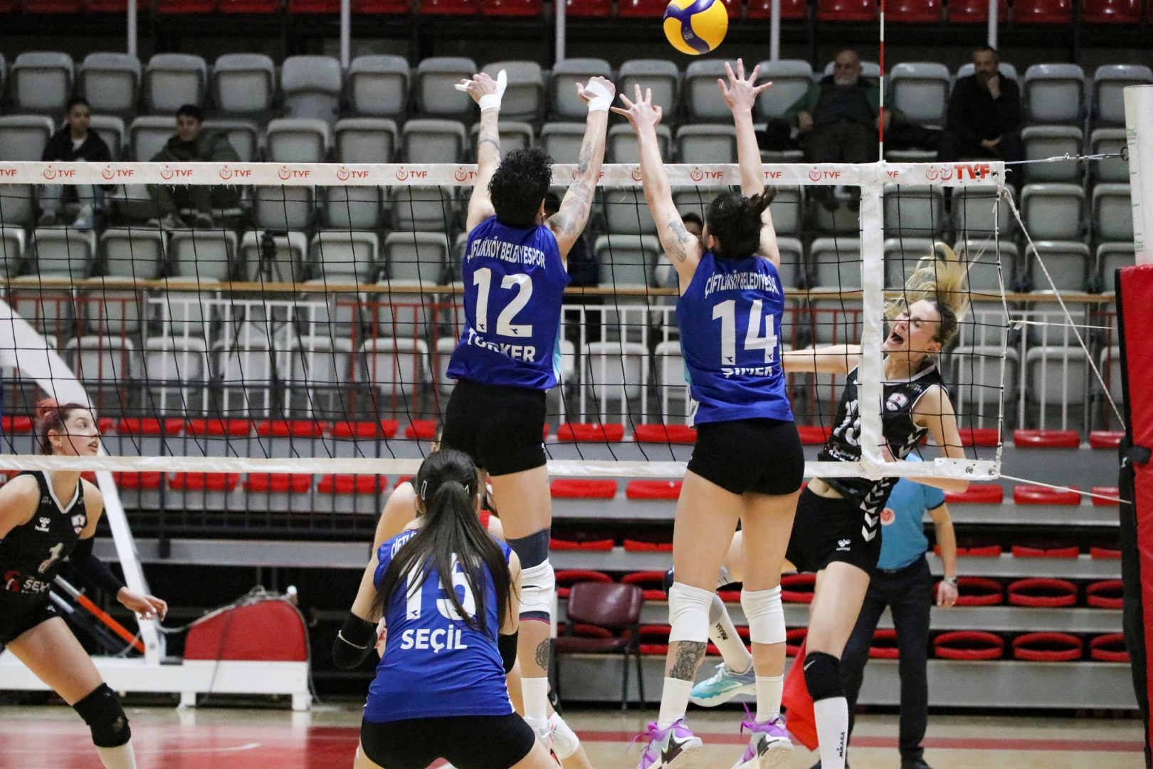 TVF Kadınlar Voleybol 2. Ligi 9. Grup’ta evinde Eskişehir Şehir Koleji’ni konuk eden Çiftlikköy Belediyespor Kadın Voleybol Takımı, zorlu karşılaşmadan 3-1’lik mağlubiyetle ayrıldı. Yalova 90. Yıl Spor Salonu’ndaki mücadeleye Aslı, Zehra Çilingir, Zehra Aydoğan, Seçil, Gülnaz, Doğa altılısı ile başlayan kırmızı siyahlılar, 27 dakika süren ilk seti 25-21 kaybederek karşılaşmada 1-0 geriye düştü. İkinci sette oyundan düşen Çiftlikköy’ün Sultanları, 19 dakikalık mücadele sonrasında rakibine 25-8 kaybedince skor 0-2’ye geldi. Eylül Şimşek ve Libero Tuğba Taş’ın da oyunda etkin olduğu üçüncü sette reaksiyon gösteren Çiftlikköy ekibi, 27 dakika süren zorlu rallide Eskişehir ekibini 25-20 ile devirdi ve skoru 2-1’e getirdi. Dördüncü seti de alarak maçı uzatmaya götürmeyi amaçlayan kırmızı siyahlılar, Eskişehir ekibine karşı iyi bir oyun sergilemelerine rağmen 25-19’la yenilmekten kurtulamadı. Bu sonuçla 3-1 kazanan Eskişehir ekibi, ligde normal sezonun son haftasına ilk iki sıra şansını sürdürerek girerken, ekibimiz ise Play-Off şansını kaybetti. Grup lideri Nilüfer Belediyespor ve ikinci İnegöl Orhaniye Voleybol’un galibiyetle kapattıkları haftanın ardından, Play-Off şansını matematiksel olarak yitiren Çiftlikköy’ün Sultanları, sezonu deplasmanda oynanacak Hekimoğlu Global Connect karşılaşmasıyla birlikte tamamlayacak.