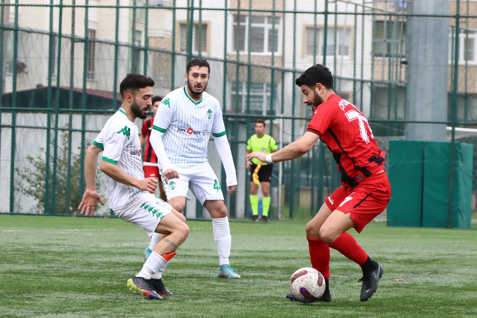 Yalova Süper Amatör Lig’in beşinci haftasında Amatör Saha 1’de Soğucakspor’la karşı karşıya gelen Çiftlikköy Belediyespor, rakibini Emre Okur’un iki golüyle yendi. Baştan sona kırmızı siyahlıların üstünlüğüyle geçen karşılaşmanın ilk yarısında gol olmazken, ikinci yarıda baskısını arttıran Çiftlikköy Belediyespor, aradığı gole 84’üncü dakikada kavuştu. Bu dakikada sağ kanattan yapılan orta sonrasında Soğucak kalesi önünde yaşanan karambolü iyi değerlendiren Emre Okur, son dokunuşu yaparak topu ağlarla buluşturdu. 1-0 öne geçen kırmızı siyahlılar, maçın son anlarında farkı ikiye çıkardı. 90+3’üncü dakikada gelişen kontra atakta orta alandan aldığı topla kaleye giden Emre Okur, sağ çaprazda kalecinin kapattığı köşeden üst ağları buldu. Bu golün ardından mücadelede son düdük gelirken, 2-0’lık galibiyet sonrasında puanını 10’a yükselten Çiftlikköy Belediyespor, Altınova ve Kaytazdere ekiplerinin ardından üçüncü sıradaki yerini korudu. Kırmızı siyahlılar, önümüzdeki hafta Kadıköyspor’la karşılaşacak.